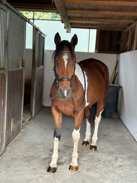 À vendre, un magnifique hongre irlandais de 10 ans mesurant 155 cm au garrot. Ce joli pie au look élégant ne séduit pas seulement par son apparence, mais aussi par son caractère doux et sa force de caractère. Il est bien monté en extérieur, que ce soit seul ou en groupe, connaît les balades à la plage et les randonnées, tout en restant toujours calme et fiable. Intrépide et attentif, il s'efforce toujours de plaire à son cavalier – un véritable cheval de cœur ! 💖 Il connaît également le travail à pied, bien que cela soit encore nouveau pour lui – il se montre toujours désireux d'apprendre et motivé. C'est un cheval à 4 allures et à l'allure de pas, ce qui le rend particulièrement confortable à monter. Le galop est également contrôlable en extérieur. En bonne santé, sans vices, pieds nus, et habitué aussi bien à la vie en stabulation libre qu'en box. Un partenaire de loisirs exceptionnel pour tous ceux qui recherchent un cheval fidèle, simple et polyvalent. 💚 Une visite peut être organisée à tout moment sur rendez-vous et un transport peut être facilement organisé ! Sur demande, son équipement peut également être acquis moyennant un supplément !