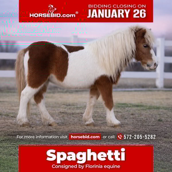 𝐉𝐀𝐍𝐔𝐀𝐑𝐘 ⭐️𝑨𝒍𝒍 𝑺𝒕𝒂𝒓 𝑳𝒊𝒏𝒆𝒖𝒑⭐️ Happening now thru MONDAY | JANUARY 26th - Available EXCLUSIVELY on HorseBid's website! For more details and to register visit: www.Horsebid.com CONSIGNOR CONTACT: Florinia equine 572-205-5282 LOCATION: Guthrie, OK BREED: Pony REGISTERED: No REGISTERED NAME: Spaghetti COLOR: Sorrel white tobiano HEIGHT: 39 inches AGE: 10 GENDER: Gelding 🍝✨ “SPAGHETTI” | 10-Year-Old Sorrel & White Tobiano Gelding | The Perfect First Pony ✨🍝 Meet Spaghetti — the kind of pony everyone hopes to find and rarely does. This 10-year-old sorrel and white tobiano gelding is the definition of a perfect first pony. He is safe, kind, and uncomplicated, with a steady mind and a big heart. Spaghetti is the type that takes care of his rider, whether they’re just learning or gaining confidence. He is easy in every way — easy to catch, easy to handle, easy to haul, and easy to love. He fits seamlessly into any program and is happy being an everyday, reliable pony. Spaghetti happily leads the line, goes off independently, and has a wonderful “more whoa than go” way of going. He will quietly pack beginners around but also keeps up with the big horses on the trail without getting strong or worried. This gelding is: • Honest • Patient • Consistent • Forgiving Perfect for: • First-time pony owners • Leadline kids • Confident beginners riding independently • Family programs and lesson barns • Trail rides and everyday fun ✨ Highlights: • 10-year-old gelding • Sorrel & white tobiano • Perfect first pony • Easy to catch • Hauls great • Stays up with big horses • Leadline or ride independently • More whoa than go • Safe, steady, and kind Spaghetti is the kind of pony parents trust and kids adore — no fuss, no drama, just a genuinely good pony that makes riding fun.