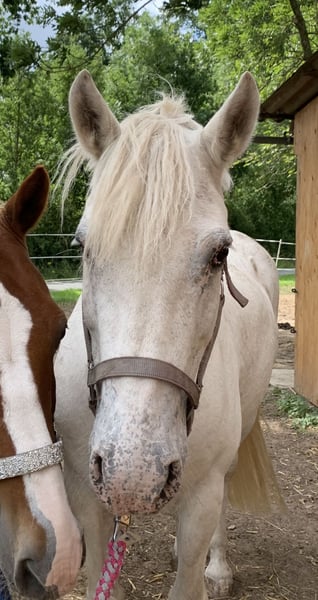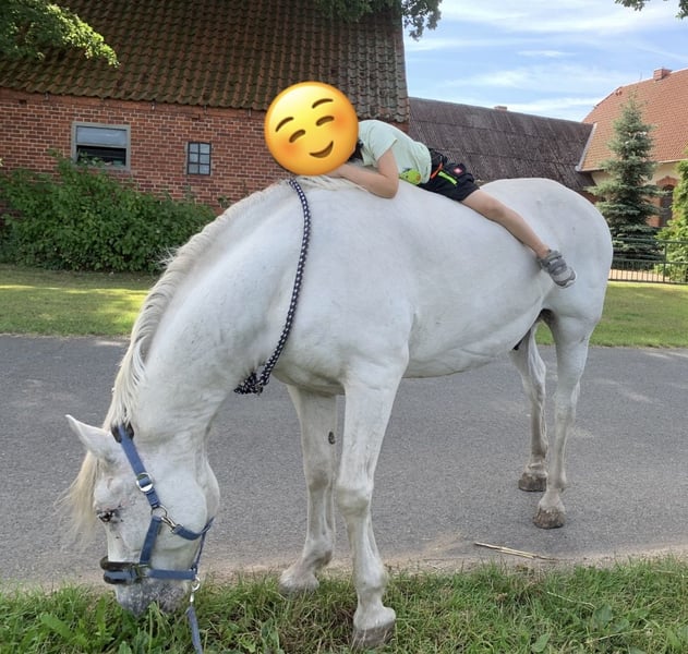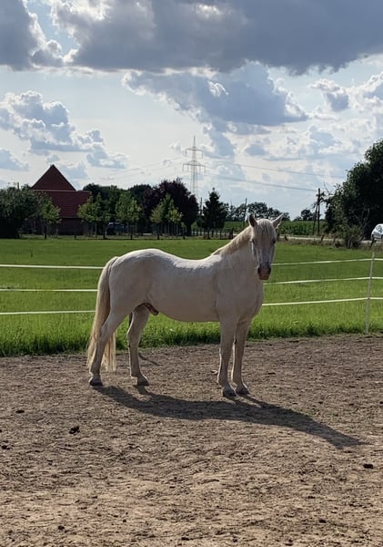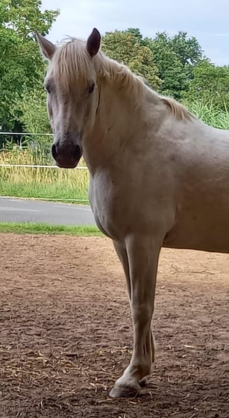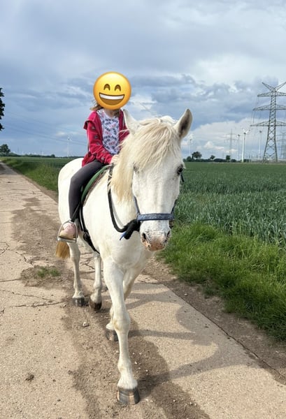 Verkaufe meinen charmanten Schimmel-Wallach, geb. 2012, mit einem Stockmaß von circa 150 cm. Dieses freundliche Kleinpferd eignet sich hervorragend für die Freizeitgestaltung und ist ideal für Reiter, die ein zuverlässiges und angenehmes Pferd suchen. „Fredi“ ist stets gesund und hat ein angenehmes, beruhigendes Wesen. Er liebt es, mit Mensch und Hund oder auch den Weidekumpels durch Wald und Wiesen zu spazieren, genießt es merklich und strahlt eine ungeheure Ruhe aus - gerade auch auf Kinder! Er kennt jegliche Form von Landwirtschaftsgeräten und Fahrzeugen, wobei eine Mülltonne schon mal unheimlich sein kann ;-) Als rangniedriger Genosse ist er sehr entspannt mit allem, was um ihn herum passiert. Aktuell ist er eine Weile nicht bewegt worden und stand mit seinen Stuten 24/7 im Offenstall/Weide, sodass er ein wenig bequem geworden ist. Gern können wir einen Kennenlerntermin vereinbaren, er freut sich bestimmt, wenn sich jemand findet, der mehr Zeit für ihn hat, als ich..