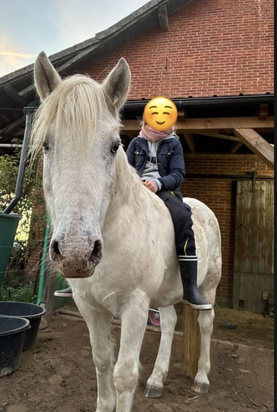 Verkaufe meinen charmanten Schimmel-Wallach, geb. 2012, mit einem Stockmaß von circa 158 cm. Dieses freundliche Kleinpferd eignet sich hervorragend für die Freizeitgestaltung und ist ideal für Reiter, die ein zuverlässiges und angenehmes Pferd suchen. „Fredi“ ist stets gesund und hat ein angenehmes, beruhigendes Wesen. Er liebt es, mit Mensch und Hund oder auch den Weidekumpels durch Wald und Wiesen zu spazieren, genießt es merklich und strahlt eine ungeheure Ruhe aus - gerade auch auf Kinder! Er kennt jegliche Form von Landwirtschaftsgeräten und Fahrzeugen, wobei eine Mülltonne schon mal unheimlich sein kann ;-) Als rangniedriger Genosse ist er sehr entspannt mit allem, was um ihn herum passiert. Aktuell ist er eine Weile nicht bewegt worden und stand mit seinen Stuten 24/7 im Offenstall/Weide, sodass er ein wenig bequem geworden ist. Gern können wir einen Kennenlerntermin vereinbaren, er freut sich bestimmt, wenn sich jemand findet, der mehr Zeit für ihn hat, als ich..