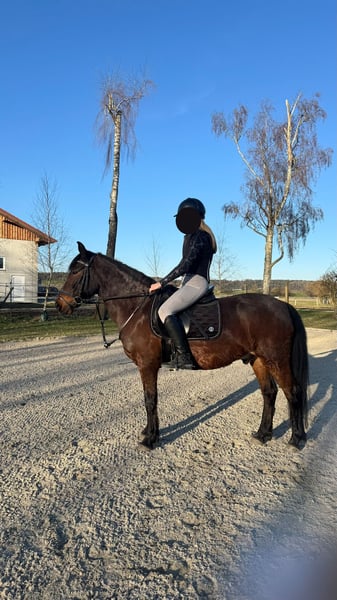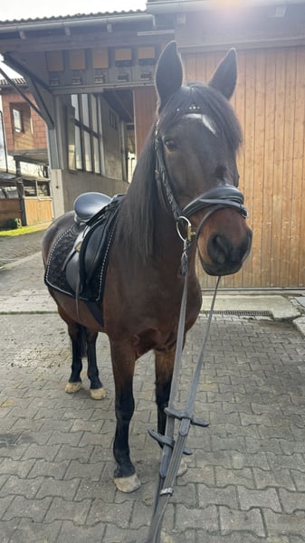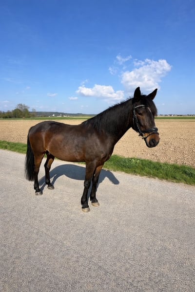 Aufgrund meiner zeitlichen Situation muss ich mich schweren Herzens von meinem 14-jährigen portugiesischen Wallach „Browny“ trennen. Er ist 1,42 m groß (Endmaßpony), Barhufer und seit vier Jahren in Deutschland. Mit seiner Größe deckt er Jugendliche oder kleinere Erwachsene gut ab. Er ist frisch geimpft und zahnbehandelt. Er hat angenehme Grundgangarten ist eher gemütlich unterwegs, also kein gasiges Pony. Er ist neugierig, aufgeweckt und gleichzeitig ein Pony, das eine verlässliche Bezugsperson braucht und gefördert werden will. Da er aktuell von zwei Reitbeteiligung mitgeritten wird, ist er regelmäßige Arbeit gewohnt. Er ist Freizeitmäßig geritten und im Gelände zuverlässig und gelassen. Gleichzeitig macht er deutlich, dass er mehr kann: Beim Freispringen zeigt er Vermögen bis ca. 1,15 m, auch unter dem Reiter ist Springen möglich, hier wartet noch schönes Entwicklungspotenzial. Eine kleine Turniererfahrung bringt er ebenfalls mit: Er hat bereits an Umritten, Wettrennen und einem Schritt-Trab-Wettbewerb teilgenommen, letzteren schloss er mit dem 1. Platz ab. Browny eignet sich ideal für ambitionierte Jugendliche oder erfahrene Reiter, die Freude daran haben, gemeinsam mit ihrem Pony zu wachsen. Er ist kein Schul- oder Anfängerpferd, er braucht jemanden, der ihn fordert, fördert und für ihn da ist und Reiterfahrung hat. Mir liegt sehr am Herzen, dass er in liebevolle, erfahrene Hände kommt, mit einer Person, die sich Zeit für ihn nimmt und eine echte Bindung mit ihm aufbaut. 👉Daher Platz vor Preis. Verkauf inkl. Equipment (Sattel, Trense) möglich. Um Reittourismus zu vermeiden, berechnen wir für ein Probereiten 50 €, die beim Kauf selbstverständlich verrechnet werden. 📍 Standort: 84513 Erharting 📩 Videos & weitere Infos gerne auf Anfrage