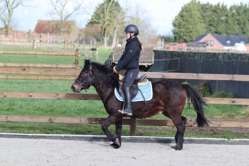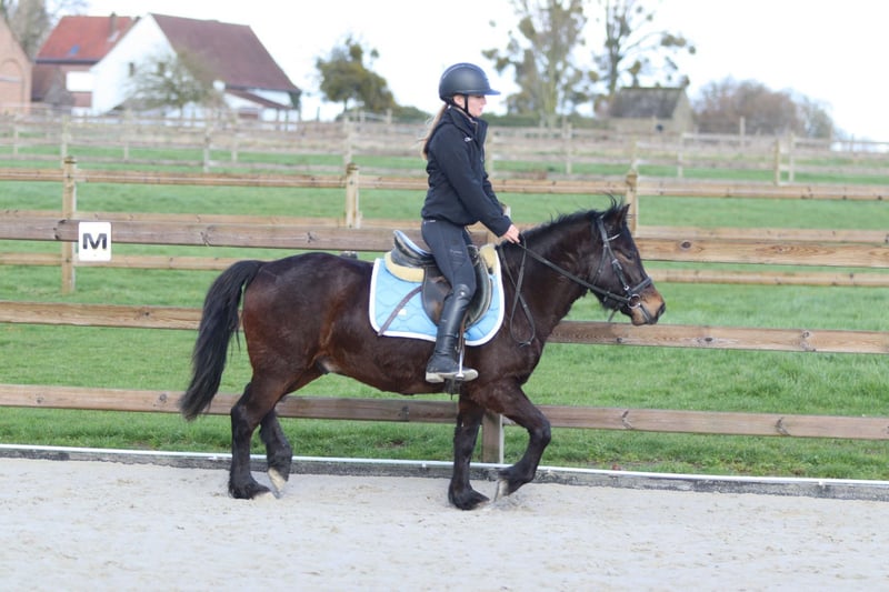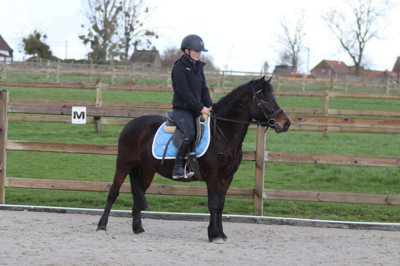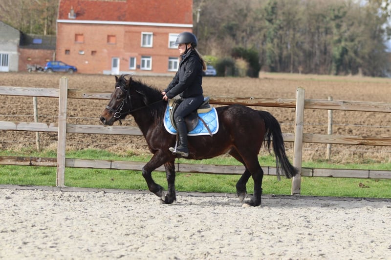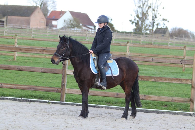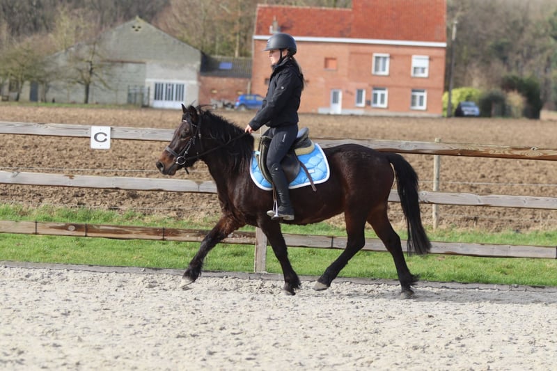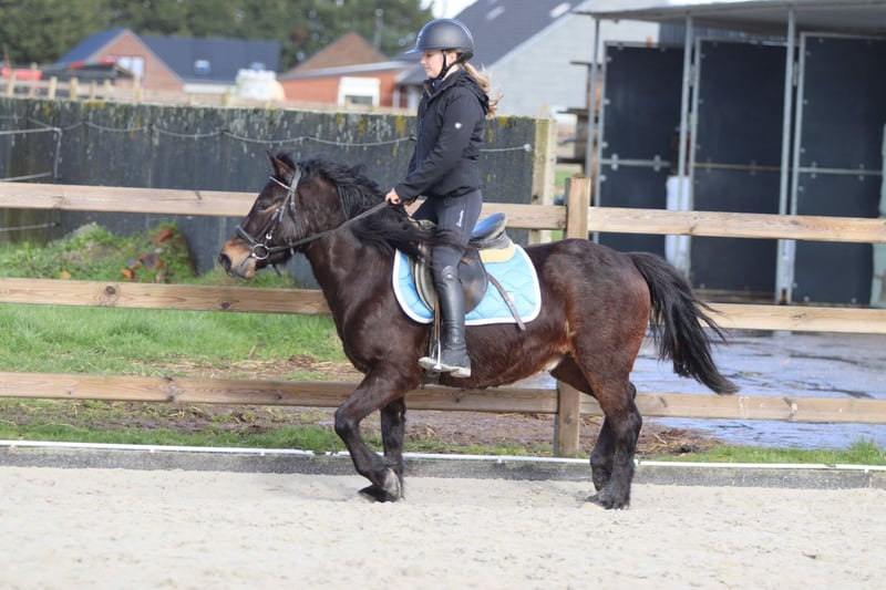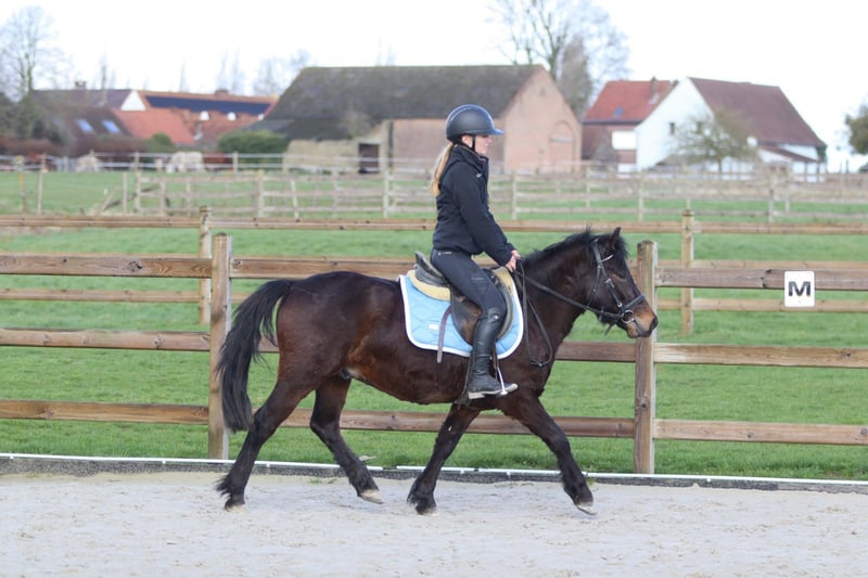 Benny is a 4-year-old cob measuring approximately 1.33 m. A charming young pony with a sweet temperament and a pleasant attitude. He is well-behaved and calm in handling. He is easy to manage in daily work and stands nicely still when tacked up. Under saddle, he is well-mannered and easy to ride, demonstrating willingness to work. He is also suitable for outdoor rides and continues to learn every day. More information? +32 475 68 22 43 For videos: please ask for our website