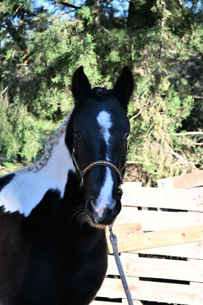 Je vous présente Domino , un joli hongre irish cob croisé frison 🦄 1m35 et porteur ! Monté aux 3 allures, joueur, attentif mais aussi un peu têtu 🤪 Très gentil, un vrai nounours, si vous souhaitez rester 3h à l'arrêt en selle il attendra vos ordres 🙏 Il laisse bien gentiment mon fils de 6ans faire quelques tours sur son dos sans crainte. Qu'il pleuve, qu'il vente,... rien ne le dérange. Écoute à la voix le changement d'allure et commence la jambette ainsi que la révérence. Il a les pieds sûrs, passe partout, peur de rien. Je suis convaincue qu'il sera très polyvalent ! Que ça soit sur des petits parcours de saut, du spectacle, de la randonnée, poney games, attelage,.... Il a le physique et le mental pour tout 🥰 Un vrai petit bijoux 💎 Il conviendra à un jeune cavalier courageux qui rêverai de grandir avec son poney et apprendre ensembles ou bien même un adulte 😍 Il va encore changer physiquement déjà qu'il soit beau comme ça 😁 il n'a que 3ans ! Sa future crinière de frison/irish fera son apparition 🫣 Bref, je n'aime pas dire cela habituellement mais si vous voulez faire un beau cadeau de Noël pour votre enfant PASSIONNÉ et RESPONSABLE, voilà un cadeau parfait 🥰 Note très importante : Il AIME la banane 🍌 🇫🇷 Visible à côté de St Remy de Provence 🇫🇷 🚛 Transport possible partout 🚛 #poneyclub #poney #poneydamour #ponies #ecurie #ethologieequine #poneyavendre #chevalpassion #avignon #ponygames #attelage #eyragues #chateaurenard #saintremydeprovence