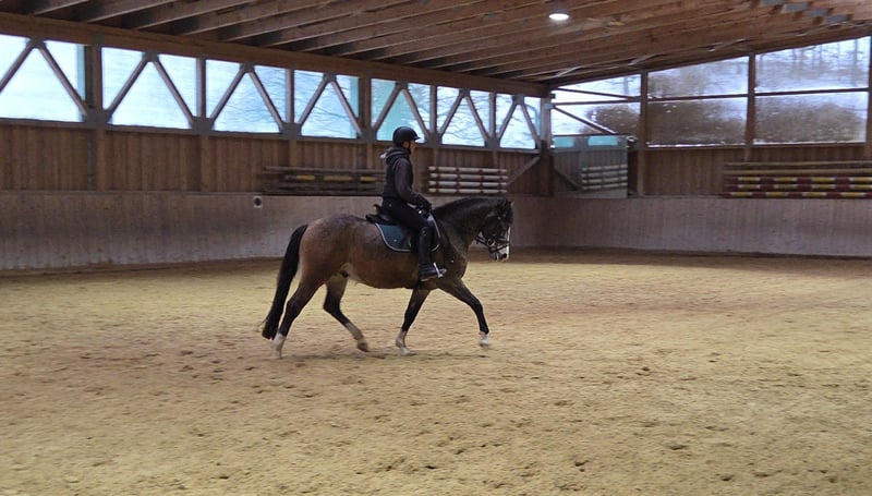 For sale: Young Riding Pony cross gelding, born in 2022. Spartakus currently measures 145 cm and, thanks to his above-average gaits, is perfectly suited for Pony Dressage. He impresses with his pleasant overall demeanor and consistently calm, affectionate nature. The gelding has been backed and demonstrates a promising development in dressage work. A reliable partner for ambitious riders seeking a talented young prospect. Please feel free to contact me for more information or to arrange a viewing.