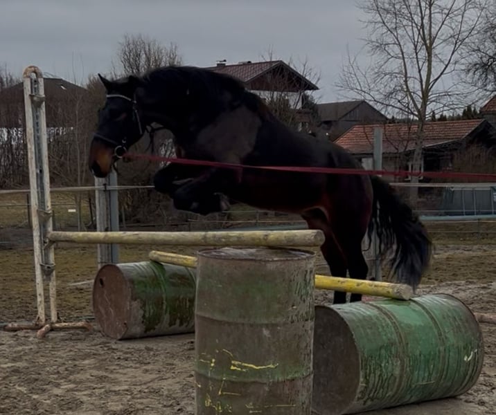 Dieser beeindruckend gebaute junge Wallach mit seinem kräftigen Körperbau kombiniert kraftvolle Energie mit einem erstaunlich ruhigen Charakter und spielerischen Fähigkeiten. Seine Beherrschung der Grundgangarten im Reitplatz und seine Vertrautheit mit dem Longenunterricht machen ihn zu einem wahren Juwel. Er liebt Ausritte sowohl allein als auch in der Gruppe, was seine Vielseitigkeit unterstreicht. Transport und Hufschmied sind für ihn kein Problem. Mit der richtigen Förderung seiner Ausbildung, die seinem Alter entspricht, entfaltet sich hier ein vielversprechendes Pferd mit enormem Potenzial – eine Investition in die Zukunft! Für weitere Fragen bitte melden