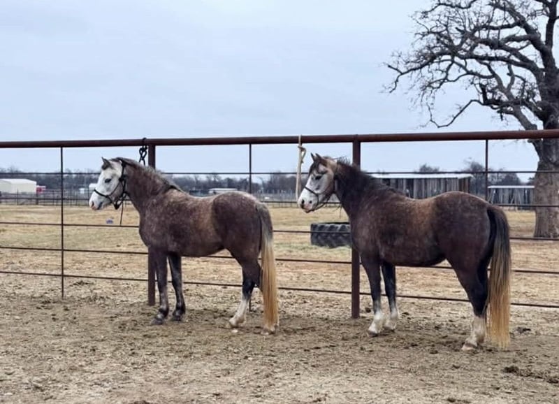 "AVAILABLE ON ONLINE HORSE AUCTION AT www DOT PlatinumEquineAuction DOT com BIDDING OPEN NOW thru SUNDAY | APRIL 19TH! *Final price will be determined on auction site* CONSIGNOR CONTACT INFO: Thea Park 970-632-3644 LOCATION: Fort Collins, CO ★★ SHOTGLASS BLUESTONE ★★ “Romeo” | 2021 Registered Welsh Pony Gelding | 12.2 Hands | Fancy • Fun • Kid-Approved Romeo is the definition of a dream pony. This 2021 registered Welsh gelding stands 12.2 hands tall and is as adorable as they come, with a perfect button nose, beautiful face, striking eye, and correct conformation to match. He’s the kind of pony that captures hearts the moment he walks out of the stall. Romeo is first to meet you at the gate and absolutely loves attention. With his goofy personality and sweet nature, he quickly becomes a favorite wherever he goes. He bonds easily with his people and has the kind of temperament that makes him a joy to have in the barn. Under saddle, Romeo is well-started and confidently progressing. He completed 90 days of jump training last summer and has been ridden and shown by lesson riders. He has a solid walk, trot, canter, and stop, a natural lead change, and transitions easily — cantering off a kiss and stopping off voice cues. He’s responsive, balanced, and incredibly fun to ride. He is reliable enough that my 2 year old daughter with very little riding experience can ride him around all by herself. Romeo has been shown at Estes Park and Copper Penny, hauling in, stepping off the trailer, and riding exactly the same as he does at home. His consistency and level-headed nature make him stand out in new environments. He also absolutely loves the trail. Romeo has been ridden extensively outside, confidently navigating dogs, bikes, running teams, strollers, traffic, and even busy downtown settings at night with music and crowds. He crosses water, bridges, tunnels, and will ride along the road without hesitation. Beyond riding, Romeo has a strong groundwork foundation and has been introduced to liberty work. He’s learning tricks like the step-up, bow, and lay down, and enjoys engaging with his handler. He’s also been ridden bareback and with a neck rope, has a finished neck rein, and moves nicely off leg cues. Romeo combines talent, brains, heart, and personality into one compact, eye-catching package. He has a wonderful foundation, a big try, and the kind of disposition that makes him truly special. If you’re looking for a fancy, safe, and versatile pony with show experience and real-world miles, Romeo is ready to be someone’s absolute favorite. Watch his extremely detailed video and come meet this standout little gelding in person — he’s every bit as cool as he sounds. For more information, contact Thea at 970-632-3644.