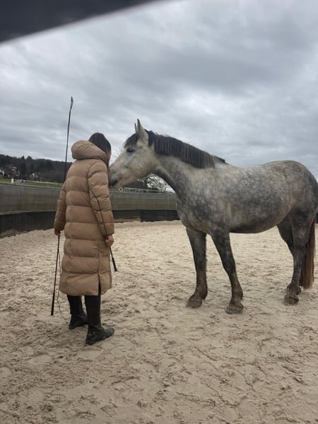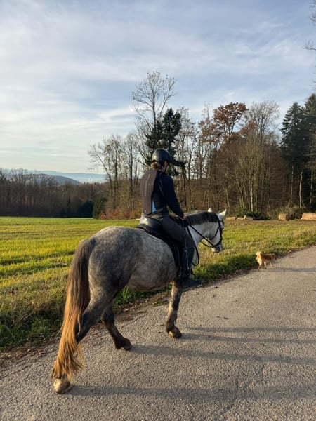 Dino ist 2021 geboren und seit einem Jahr unter dem Sattel. Wir haben uns gemeinsam viel erarbeitet, denn noch vor sechs Monaten war vieles nicht möglich, was ein Pferd eigentlich können sollte – dazu gehörten unter anderem Putzen, Hufe geben, Longieren und routiniertes Reiten. Er ist ein relativ dominanter Wallach, der den persönlichen Raum noch nicht vollständig akzeptiert und eine geringe Frustrationstoleranz hat. Er testet häufig Grenzen und braucht jemanden, der sehr klar ist. Jemanden mit Erfahrung im Jungpferdebereich, der ihn als seine Aufgabe sieht und ihm den Rahmen gibt, den er braucht. Am besten wäre ein reiner Wallach-Offenstall mit einem guten Herdenchef oder einer großen Herde. Wenn er seiner festen Bezugsperson vertraut, ist er ein wirklich toller Trainingspartner: super motiviert, lauffreudig und unerschrocken. Er liebt Ausritte, geht in allen GGA und ist sehr gut über die Stimme regulierbar. Außerdem ist er sehr menschenbezogen, lernwillig und macht sich in der Freiarbeit sehr toll. Zudem hat er ein gutes Grundfundament und ist stabil& funktionsfähig gebaut. Zähne sind frisch gemacht. Platz vor Preis Keine Anfänger Keine Händler Kein Schulbetrieb