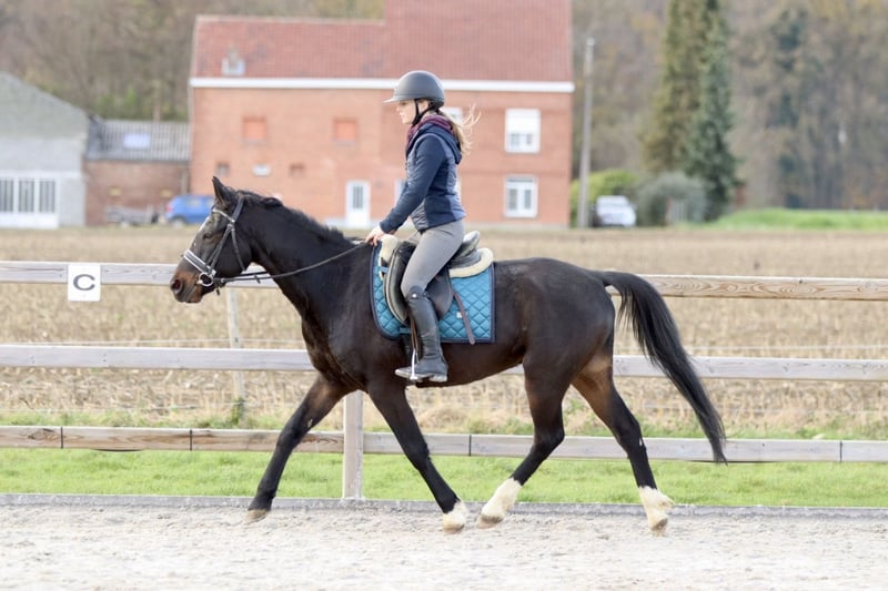 Poney de selle E - Dean (5 ans, 1,54 m) Dean est un poney de selle très gentil et facile à monter, âgé de 5 ans et mesurant 1,54 m. Il possède un trot confortable et un galop détendu, agréable aussi bien en carrière qu’en sortie extérieure. Il n’est pas regardant et se montre toujours fiable dans son comportement. 💫 S’entend bien avec les autres chevaux 💫 Passe facilement un obstacle 💫 Obéissant en toutes circonstances, aussi bien au box qu’au pansage 💫 Dossier complet et à jour En résumé, un poney agréable qui procure du plaisir à son cavalier et est prêt à évoluer en compétition ou en loisir. 📞 Plus d’informations : +32 475 68 22 43 🎥 Des vidéos disponibles sur notre site – n’hésitez pas à nous contacter pour le lien !