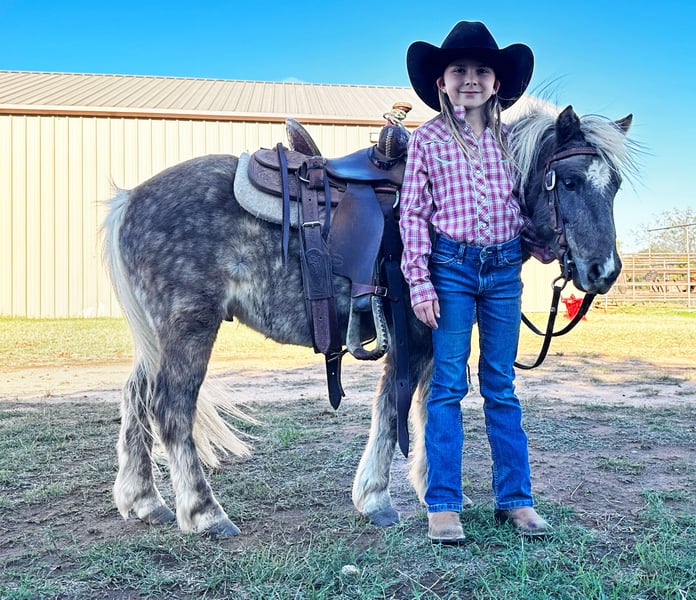 🎁 𝐈𝐍 𝐓𝐈𝐌𝐄 𝐅𝐎𝐑 𝑪𝒉𝒓𝒊𝒔𝒕𝒎𝒂𝒔 🎁 Happening now thru TUESDAY | DECEMBER 9th - Available EXCLUSIVELY on Ponybid's website! For more details and to register visit: www.Ponybid.com CONSIGNOR CONTACT: Honor Williams Ponies 817-901-4068 LOCATION: Weatherford, TX BREED: Pony REGISTERED: No COLOR: Silver Dapple HEIGHT: 40" AGE: 5 GENDER: Gelding Dapples is a gorgeous 5 year old silver dapple gelding with the cutest features. His color is absolutely stunning year round. He is as gentle as they come with good ground manners and a kind personality. He is a great lead line pony but will also go out on his own with a little more encouragement. He can also pull a cart/wagon. He has been rode bareback and with a saddle. He has been rode everywhere from being outside gathering cattle to inside the arena. He has gone to local events and nothing has bothered him. He is suitable for beginners all the way to more advanced riders. Dapples is not spooky or watchy. He has a gentle, go with the flow attitude. He gets along with others and checks all the boxes! We have three kids, all under 8 years old and Dapples has been perfectly safe with all of them. He does not get fresh. He stands tied well, loads and unloads with ease, is good to trim, good to bathe, and is easy to catch anywhere. No bad habits