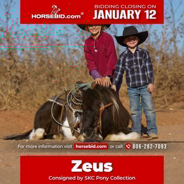 ♦️𝐍𝐄𝐖 𝐘𝐄𝐀𝐑'𝐒 𝑬𝒙𝒕𝒓𝒂𝒗𝒂𝒈𝒂𝒏𝒛𝒂♦️ Happening now thru MONDAY | JANUARY 12th - Available EXCLUSIVELY on HorseBid's website! For more details and to register visit: www.Horsebid.com CONSIGNOR CONTACT: SKC Pony Collection 806-282-7093 LOCATION: Canyon TX BREED: Pony REGISTERED: No COLOR: Black and white paint HEIGHT: 40 inches AGE: 6 GENDER: Gelding
