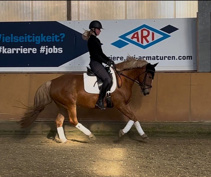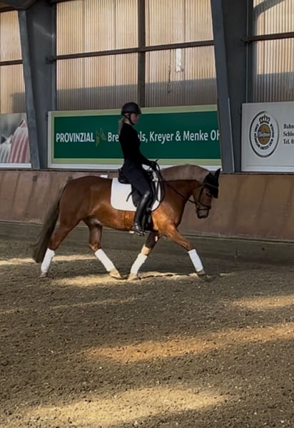 Tony ist ein 6-jähriger, sehr lieber und menschenbezogener Kerl mit einem Stockmaß von 1,47m . Er ist herdenverträglich und im täglichen Umgang ein ganz Artiger. Unter dem Sattel zeigt Tony viel Potenzial. Er ist sehr leichtrittig, fein an den Hilfen und möchte seinem Reiter gefallen. Mit seiner Art eignet er sich besonders für Reiter mit Gefühl, die Freude daran haben, ein Pferd weiter auszubilden und zu fördern. Tony verfügt über eine solide Grundausbildung. Für unseren Schulbetrieb mit häufig wechselnden Reitern ist er jedoch zu fein. Er braucht eine feste Bezugsperson, die ihm Sicherheit gibt und ihn weiter fördert, daher ist er kein Anfängerpferd. Mit der richtigen Person an seiner Seite kann er sich zu einem wunderbaren Partner entwickeln und sein Potenzial voll entfalten. Er kennt Cavalettiarbeit, sowie Longe. Auch Hofmaschinen sind für ihn kein Problem. Wir wünschen uns für Tony ein liebevolles Zuhause, in dem er individuell gefördert wird und wirklich ankommen darf. Bei ernsthaftem Interesse freuen wir uns über eine Nachricht und ein persönliches Kennenlernen.