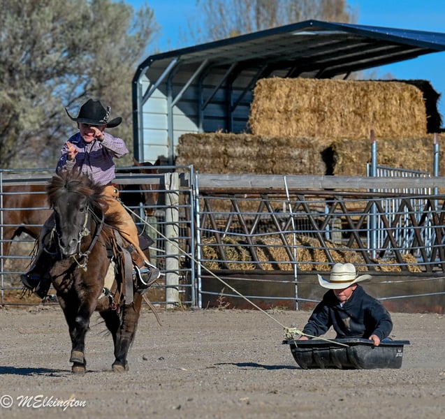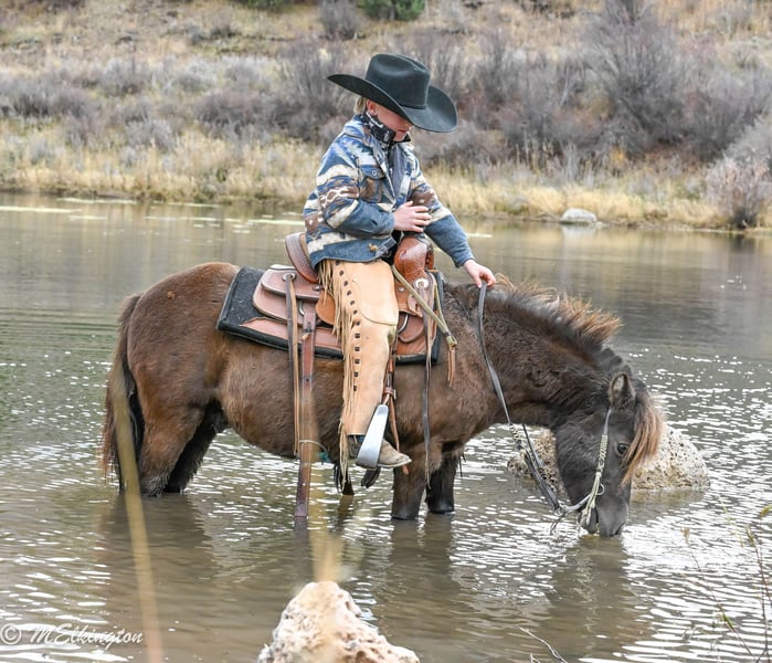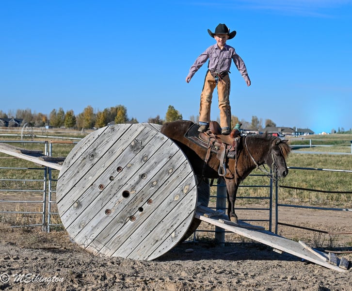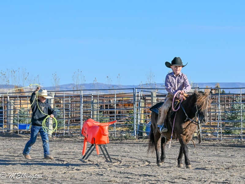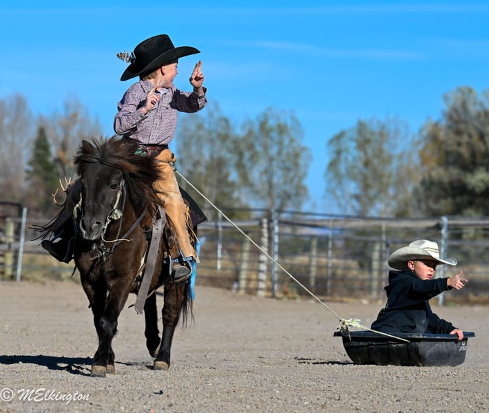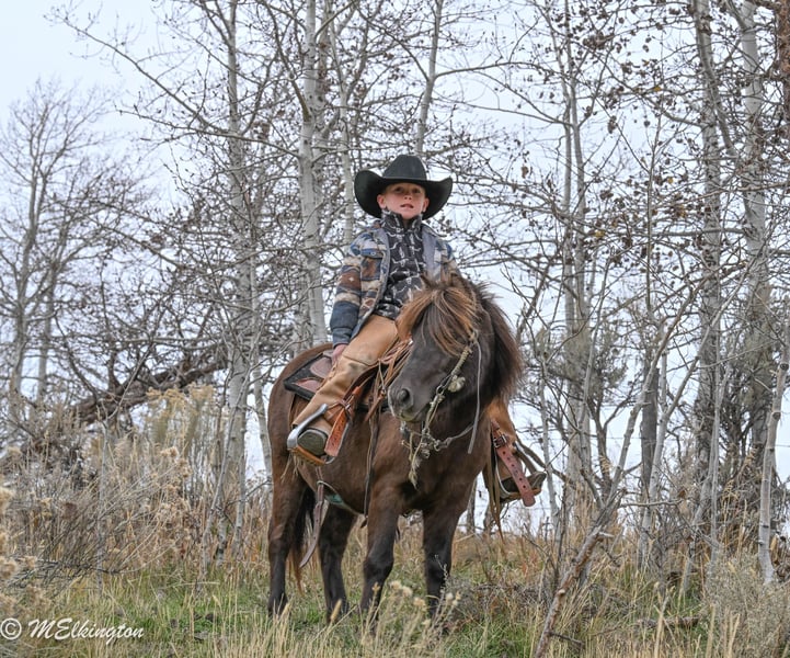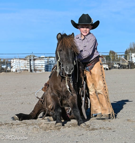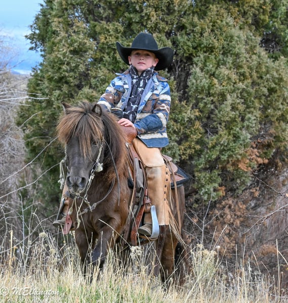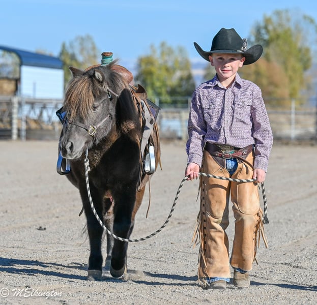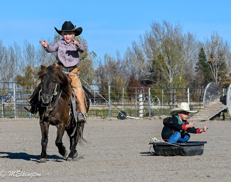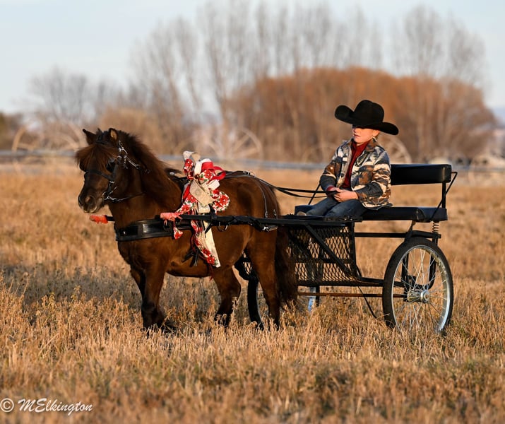 🎁 𝐈𝐍 𝐓𝐈𝐌𝐄 𝐅𝐎𝐑 𝑪𝒉𝒓𝒊𝒔𝒕𝒎𝒂𝒔 🎁 Happening now thru TUESDAY | DECEMBER 9th - Available EXCLUSIVELY on Ponybid's website! For more details and to register visit: www.Ponybid.com CONSIGNOR CONTACT: 4 Spades Ranch Chace Elkington 208-705-6540 LOCATION: Rigby, Idaho BREED: pony REGISTERED: No COLOR: Brown HEIGHT: 39" AGE: 5 GENDER: Gelding Shaggy is a 39” chocolate gelding and only 5 years old, truly every kid’s dream pony. With smooth gaits, a kind heart, and the calmest little brain, he’s as dependable as they come. Sun-kissed to a lighter chocolate in summer and jet-black when stalled, he’s just as striking as he is safe. This gelding is absolutely broke to ride—kids can hop on bareback or throw a saddle on and take off with confidence. He’s been a barn favorite and has done trail rides, play days, barrels, poles, ropes the dummy, pulls a wagon and all the fun kid stuff. Always steady and always willing, Shaggy is the kind of pony that builds confidence and makes every ride enjoyable. Shaggy has also pushed cattle, been shot off of, and handles anything new with total calm. He walks right over the teeter-totter, through the water and loves every obstacle. His lope is the sweetest, smoothest little short lope easy for kids to sit and easy to enjoy. Adding to his charm, Shaggy is trick-trained—he lays down, sits up like a dog, and even sits on a bean bag. If you’re looking for a flashy, fun, trustworthy, family-friendly pony, Shaggy is the one.