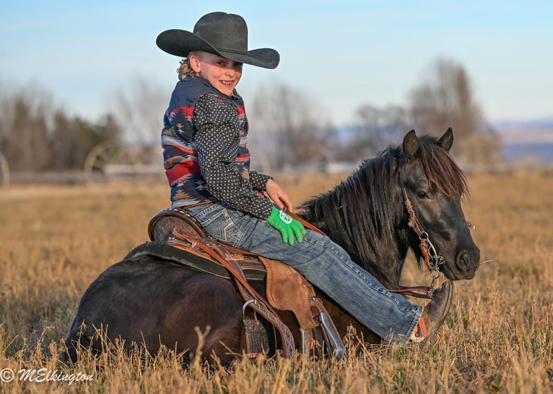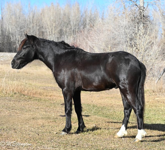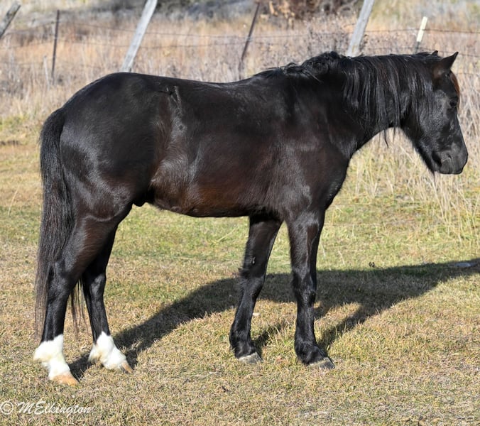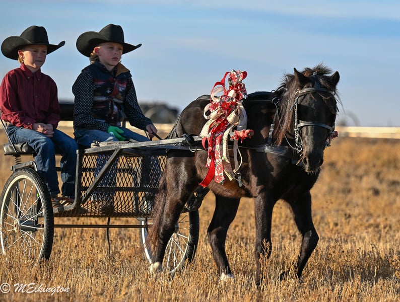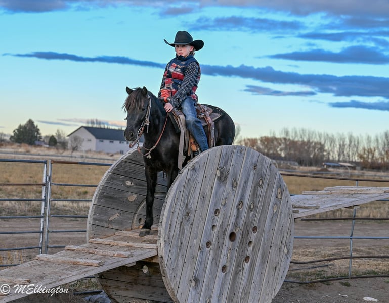 🎁 𝐈𝐍 𝐓𝐈𝐌𝐄 𝐅𝐎𝐑 𝑪𝒉𝒓𝒊𝒔𝒕𝒎𝒂𝒔 🎁 Happening now thru TUESDAY | DECEMBER 9th - Available EXCLUSIVELY on Ponybid's website! For more details and to register visit: www.Ponybid.com CONSIGNOR CONTACT: 4 Spades Ranch 208-705-6540 LOCATION: Rigby, ID BREED: Pony REGISTERED: No COLOR: Black HEIGHT: 46" AGE: 6 GENDER: Gelding Bullseye is 46 inches and 6 years old, the perfect size and age to fit most riders—from confident little cowboys and cowgirls to adults who need a sturdy, reliable mount. This handsome jet-black gelding isn’t just pretty to look at; he’s the whole package: broke to ride, broke to drive, and even knows a couple of fun tricks! He’ll lay down and is brave enough to ride up a 6-foot teeter-totter without hesitation. This pony has seen miles—MILES—of real ranch work, riding through every kind of terrain you can imagine. He’s pushed cattle, checked fence, and covered long stretches of trail in all sorts of conditions. Bullseye is as steady as they come, whether you ride him out alone or in a group. He crosses water, logs, brush, rocks, rough country, and steps through it all with confidence and good sense. In the arena, he’s just as dependable. Roping the dummy, running barrels, poles, or participating in play-day events. Bullseye has the sweetest little short lope, smooth and easy, making him a joy to ride. If you’re looking for a kind-hearted, safe, fun, and versatile pony with plenty of experience and a personality everyone falls in love with, Bullseye is your guy. Jet-black, handy, willing, and always ready for the next adventure—he’s the pony you’ll wish you’d found sooner.