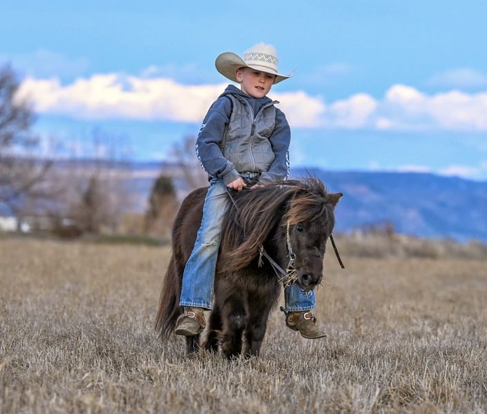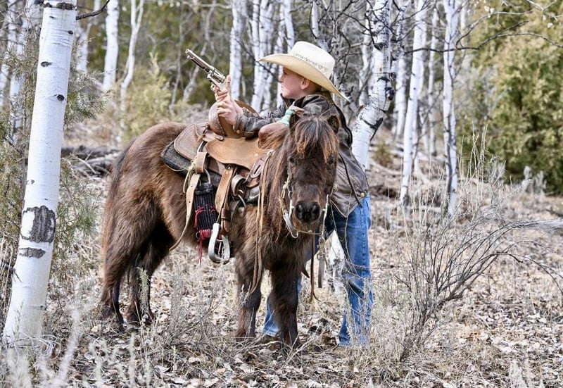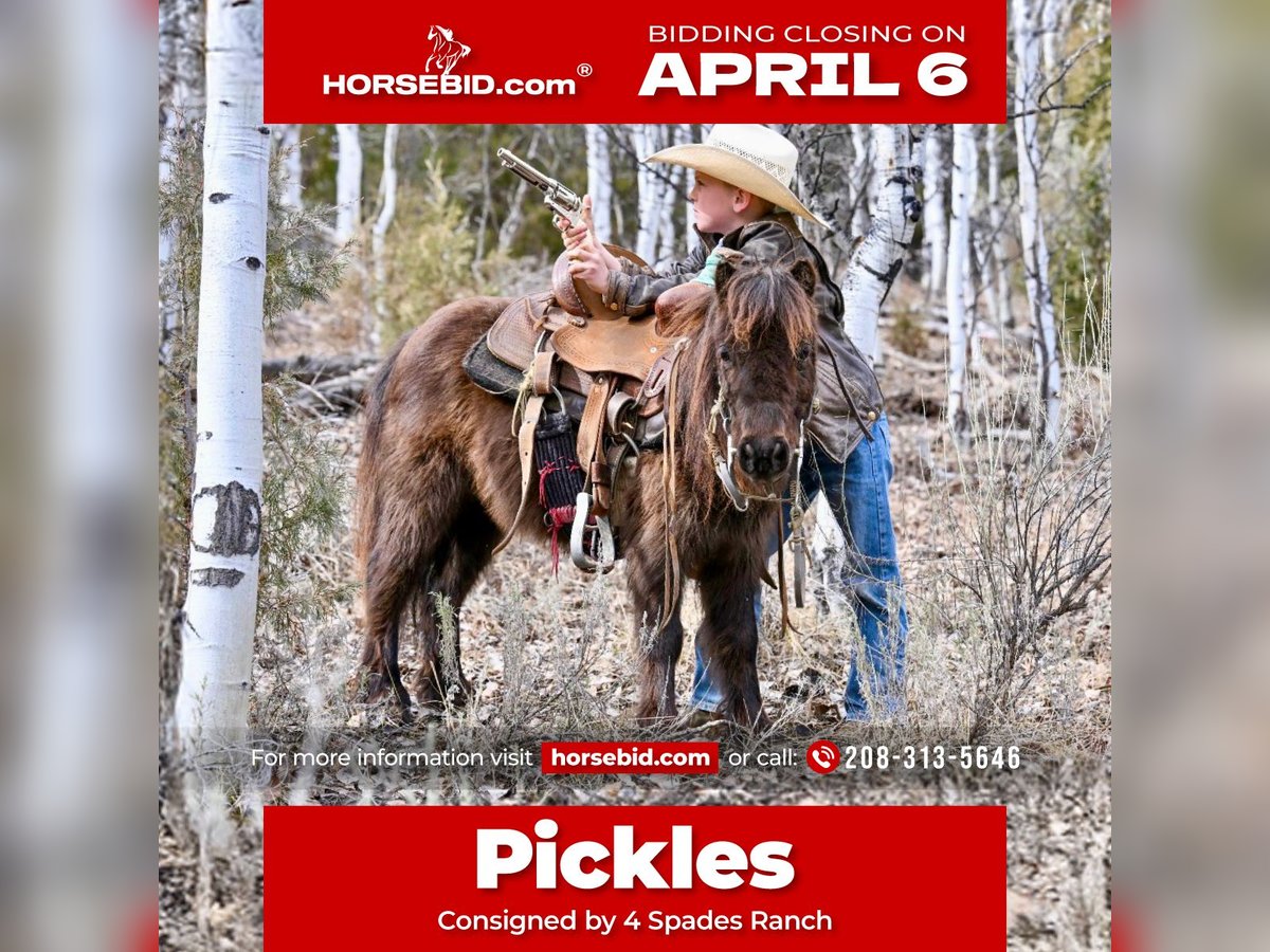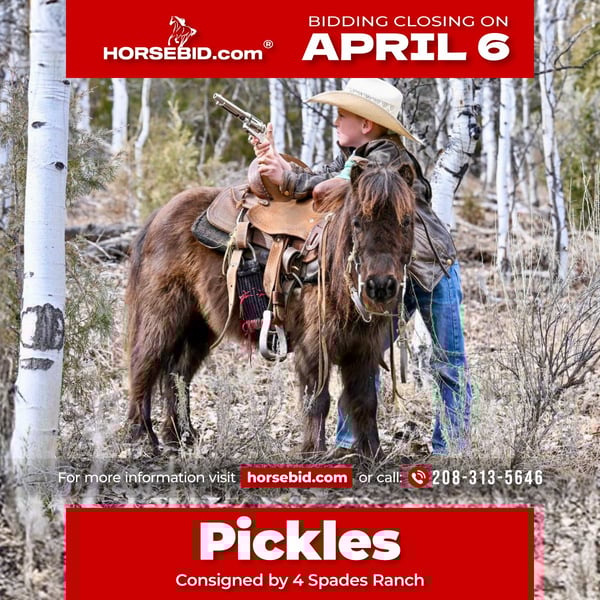 🌟𝑨𝒑𝒓𝒊𝒍 𝐀𝐋𝐋 𝐒𝐓𝐀𝐑 𝐋𝐈𝐍𝐄𝐔𝐏🌟 Happening now thru MONDAY | APRIL 6th - Available EXCLUSIVELY on HorseBid's website! For more details and to register visit: www.Horsebid.com CONSIGNOR CONTACT: 4 Spades Ranch 208-313-5646 LOCATION: Rigby, ID BREED: Pony REGISTERED: No COLOR: Brown HEIGHT: 34 AGE: 7 GENDER: Gelding Pickles is the kind of pony everyone hopes to find but rarely does. This 7-year-old brown gelding is the definition of a true children’s pony—safe, seasoned, and exceptionally versatile. Pickles has been thoughtfully used and exposed to just about everything a family could want. He has been ridden out on the trails, is completely comfortable around obstacles, and will quietly go over, around, and through whatever is asked of him. He is trained to lay down and has been desensitized to gunfire, handling it with confidence and composure. In addition to riding, Pickles is broke to drive and has been driven through neighborhoods, down the road, and even on trips to Grandma’s house. He is gentle and kind-minded, making him suitable for even the littlest handlers—he has been led, groomed, loved, and ridden by young children with ease. And if your little cowboy thinks he’s the next John Wayne, Pickles is the mount he’s been dreaming of. These boys have ridden him all over the mountain—chasing outlaws, shooting the bad guys, and saving the day—building confidence, imagination, and a whole lot of memories along the way. He’s also the kind that makes kids feel like entrepreneurs. Our 8-year-old took Pickles to the horse expo and proudly led him through the booths giving pony rides—charging a dollar a ride. He came home with a fistful of cash and the biggest grin you’ve ever seen. At one point, a kind lady even tipped him $5 just to let Pickles take a break for 15 minutes. That’s the kind of pony he is—safe, steady, and loved wherever he goes. What truly sets Pickles apart is his demeanor. He is patient, forgiving, and kind, giving young riders the confidence they need while still being fun and capable enough to grow with them. Whether it’s a first pony, a step-up mount, or a dependable family pony that can do a little bit of everything, Pickles checks every box. If you’re searching for that hard-to-find, all-around children’s pony with the mind, training, and experience to match—Pickles is your guy.