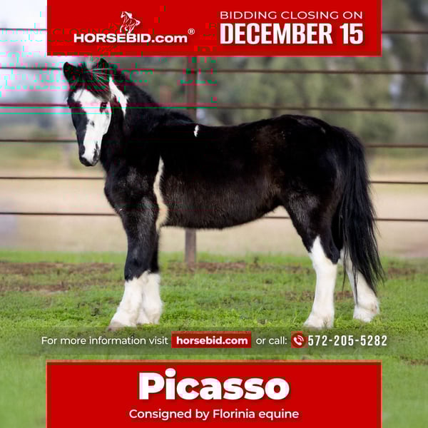 🎄𝐓𝐇𝐄 𝑯𝒐𝒍𝒊𝒅𝒂𝒚 𝐂𝐋𝐀𝐒𝐒𝐈𝐂🎄 Happening now thru MONDAY | DECEMBER 15th - Available EXCLUSIVELY on HorseBid's website! For more details and to register visit: www.Horsebid.com CONSIGNOR CONTACT: Florinia equine 572-205-5282 LOCATION: Guthrie OK BREED: Pony REGISTERED: No REGISTERED NAME: Picasso COLOR: Black white paint HEIGHT: 44inches AGE: 7 GENDER: Gelding ✨ PICASSO – 7-Year-Old Gelding • 44” Pony • One-of-a-Kind Stunner ✨ If you’ve been searching for the perfect Christmas pony for your little one, Picasso checks every single box—and then some. This 7-year-old, 44-inch black & white gelding looks like he stepped straight out of a storybook. He carries four crisp white socks, a striking half-white/half-black face, and two crystal blue eyes. Everywhere he goes, Picasso turns heads. His look is unforgettable—but his mind is what makes him truly priceless. 🧒 Kid-Safe • Bombproof • Beginner Friendly Picasso is the definition of a kid horse deluxe. He has been handled, loved, and ridden by kids of all ages and confidence levels. He is steady, kind, forgiving, and trustworthy. 🚙 Traffic Safe – Day or Night He has been ridden in town, through traffic, and is confident around cars, tractors, bikes, dogs—you name it. Lights, noise, commotion… nothing fazes him. 🌲 Trail Tested & Arena Smart Picasso is a veteran trail pony, happy to go out alone or with a group. He crosses logs, water, bridges, and rough terrain without hesitation. In the arena he will walk, trot, lope, and has even done barrels, poles, and leadline events. He is the perfect combination of safe, steady, and still fun. 🐴 Drives Too! This little gelding even pulls a wagon. Hook him up and go—he stands quiet, drives willingly, and loves having a job. 💉 UTD & Well-Mannered Picasso is current on everything—vaccinations, deworming, farrier, and dental. He is easy to catch, clip, bathe, load, and stands perfectly for little hands to groom. 🎄 A Christmas Pony Dreams Are Made Of Ponies like Picasso don’t come around often. He is safe, seasoned, stunning, and ready for his next little cowboy or cowgirl. If your child has been wishing for their first real partner, Picasso is ready to make those Christmas dreams come true Call Megan 572-205-5282 for more information or to schedule a FaceTime visit !