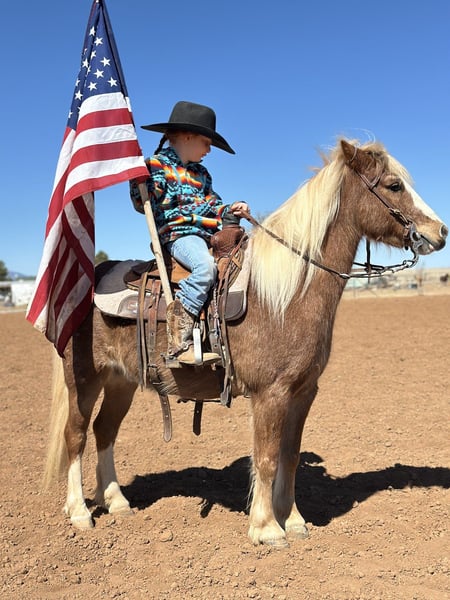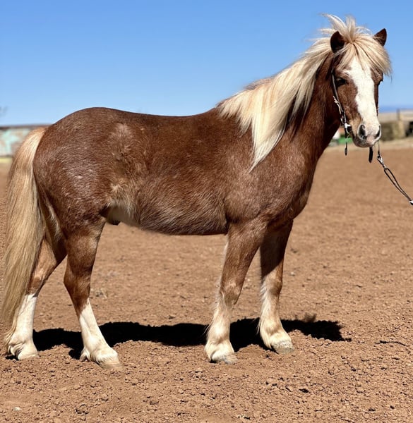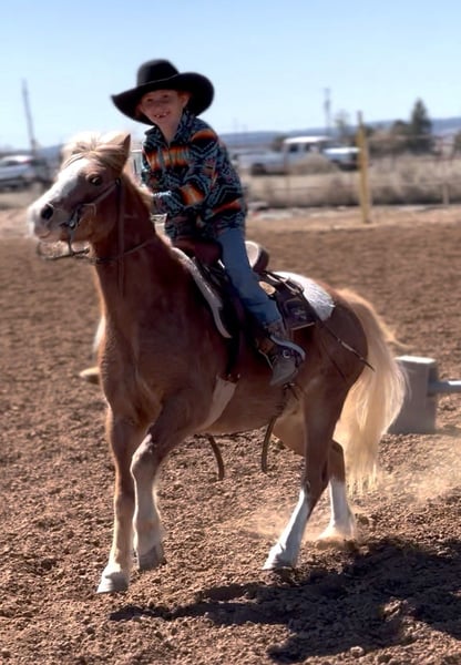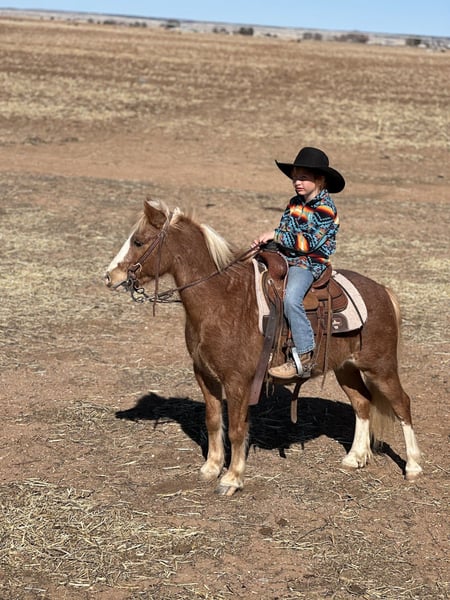 ⚜️𝓽𝓱𝓮 𝐆𝐎𝐋𝐃 𝓢𝓮𝓵𝓮𝓬𝓽⚜️ Happening now thru MONDAY | MARCH 23rd - Available EXCLUSIVELY on HorseBid's website! For more details and to register visit: www.Horsebid.com CONSIGNOR CONTACT: Zia Gililland 432-448-7304 LOCATION: Edgewood, NM BREED: Pony REGISTERED: No COLOR: Red Roan HEIGHT: 45 inches AGE: 8 GENDER: Gelding Pac-Man, known as “Mr. Handsome” by my daughter, is an absolute hunk! Not only is he a stunning red roan, he rides around even better than he looks. Pac-Man is 8 years old and stands 45 inches tall — the perfect pony size. Pac-Man is very BROKE, the kind that makes it easy for a kiddo. He’ll keep up with the big horses all day long and will walk/long trot right along while checking cattle. He’s been ridden outside, roped the dummy off of, and is always happy to go through playday events- Or go on a casual stroll Pac-Man is the kind everyone looks for when it comes to a pony. He’s easy to steer, honest, and when asked he’ll drag his butt better than most horses. He has the ability and confidence to take a rider to the next level. PAC-Man is very responsive, he will walk, trot and lope with zero fuss! He’s a bigger-moving pony with a ground-covering stride. He has the miles to back it up too -Checking on momma cows keeping up with the big horses all day long without hesitation. This gelding is gentle, level-headed, and stays the same every ride. The most important part is that he’s 100% safe. It’s nothing to see my 6-year-old daughter Zia riding him around double with her cousin at ropings. Kids absolutely love Pac-Man, and he never gets fresh. He truly is a good boy with a lot to offer his littles! Please don’t hesitate to call with any questions: 432-448-7304 Location: Edgewood, NM Arranged shipping available