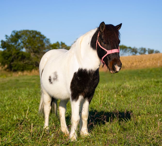 🎁 𝐈𝐍 𝐓𝐈𝐌𝐄 𝐅𝐎𝐑 𝑪𝒉𝒓𝒊𝒔𝒕𝒎𝒂𝒔 🎁 Happening now thru TUESDAY | DECEMBER 9th - Available EXCLUSIVELY on Ponybid's website! For more details and to register visit: www.Ponybid.com CONSIGNOR CONTACT: Taylor Herald 270-841-3856 LOCATION: Henderson, KY BREED: Pony REGISTERED: No COLOR: Bay/white pinto HEIGHT: 39” AGE: 7 GENDER: Gelding Let us introduce you to Cowboy! Don’t let his name fool you, it doesn’t take a cowpoke to ride this handsome boy! Cowboy is a 39”, 7 year old, gorgeous pinto pony! He has that cute, eye catching color, and blue eyes that is sure to get your little one noticed anywhere they go. Cowboy has resided with us for a little over a year, and has been a sure favorite in our family. His duties as “the kids’ pony” have far exceeded our expectations. He’s been hauled all over and seen the sights. Rodeos, parades, trails, obstacles, tarps, you name it. He’s been dressed up, dressed down, painted, pulled around, sacrificed to the beginners, and he never has once complained. He’s handled the bright city lights, sirens, and chaos with grace and fortitude. Cowboy has also skillfully carried my 7 year old daughter down the trails for the last year, and has always kept her safe and sound. He’s crossed water, went over bridges, up and down hilly and rocky terrain, through town and traffic, and never missed a beat. Cowboy’s upkeep is extremely easy, making it almost effortless to own and love him. He is a pleasure to have around, stands tied, stands for baths, saddling, bridling, harnessing, etc. he is not buddy nor barn sour. Cowboy’s easy going, go with the flow demeanor makes him the perfect candidate for a little one for leadline, or learn to ride independently on a slow going mount. If you are looking to teach your next little one to be a cowboy or cowgirl without the worry of the typical pony attitude, then let’s talk about him! Let’s not forget, Cowboy also drives as well! He’s no stranger to pulling the sled around in the snow for some winter wonderland fun! Cowboy sells sound with a current recent coggins, up to date on farrier, wormings, and good teeth! Shipping is available, and we are more than happy to help with shipping arrangements. Need a place to hide him until closer to Christmas? We offer that too! Please don’t hesitate to give us a call to talk about Cowboy, we’d love to hear from you!