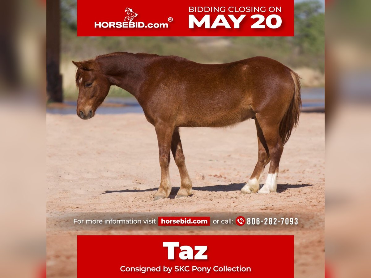 ▪️◽️ The May Classic ◽️▪️ Happening now thru MONDAY | MAY 20th - Available EXCLUSIVELY on HorseBid's website! For more details and to register visit: www.HorseBid.com CONSIGNOR CONTACT: SKC Pony Collection 806-282-7093 LOCATION: Canyon, TX BREED: Pony REGISTERED: No COLOR: Sorrel HEIGHT: 12.3 AGE: 6 GENDER: Gelding A kind eye, fun personality, old fashion shape, and easy going demeanor, make this pony a house favorite around here. Taz is not only broke to ride and drive the very best but he also knows some cool tricks like the curbside mount, laying down on command, and Saylor has even taught him to push the jolly ball around. Taz has an inquisitive mind and a big heart. He’s extremely trainable and only wants to please. At 12.3 hands he’s the perfect size for all ages of child. We have hauled him to numerous play days and to camping trips and parades. He has seen about all there is to see and always stays quiet and reliable. Taz will walk trot and lope easily and has a big stop. He is soft everywhere and is easy for the little ones to maneuver around. Call or text 806-282-7093 if you have any questions.