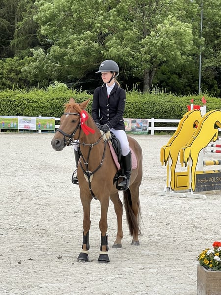 With a heavy heart, I am selling a versatile pony from the group, standing exactly 148 cm. Wicher is a pony with a big heart for show jumping, but he also excels in dressage. He has participated multiple times in jumping competitions up to 95 cm, often placing on the podium, and has competed in L-class dressage training sessions. At home, he has jumped up to 125 cm. This year, due to the rider’s injury, Wicher has been in continuous dressage training with a professional rider specializing in this discipline, and he has competed successfully in dressage competitions up to P-class, earning very good scores. He was also crowned the I-Vice Champion of the West Pomeranian Voivodeship in the young junior category on ponies. The pony is bombproof, well-behaved around children, and can go out alone or with other horses. Never injured. An ideal pony for a child or junior to introduce them to competition, but also excellent for winning. Possibility to purchase with matching tack. More information available by phone. Viewing of the horse can be arranged near Szczecin.