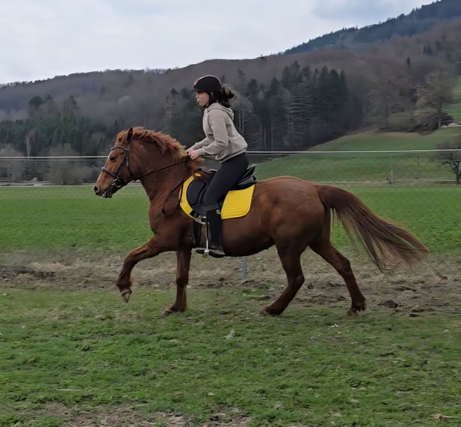 For sale is our sport pony mare Dakota, whom we have owned for the past two years. When we purchased her, she was pregnant – we will keep the foal, so Dakota is now looking for a new home. At her previous owner's place, she was mainly driven, while with us, she has mostly been ridden in the arena and on trails. She is well-behaved, eager, and motivated, even when ridden by young riders. In groundwork, she still requires some consistent training. During leading or lunging, she occasionally tries to pull away. Once she realizes that’s not possible, she quickly becomes obedient again. Health / Care: - Teeth treated - Regularly vaccinated - Regularly dewormed Stabling: - Used to an open stable (mare group) - Low in the hierarchy and very social With a bit more work and trust, Dakota can become a fantastic leisure horse and possibly a school horse. Please feel free to contact us if you're interested.
