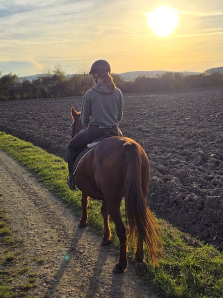 Ich wünsche mir für meine liebe Dakota ein passendes Zuhause. 💛 Dakota ist eine 2014 geborene, fuchsfarbene ungarische Kleinpferdstute (ca. 148 cm). Sie ist eine ganz besondere Seele – ruhig, sensibel und vom Wesen her ein bisschen wie „I-Aah“ aus Winnie Pooh 🩵: freundlich, geduldig, aber mit einem sanften, leicht ,,traurigen" Blick. Dakota ist kein typisches Kuschelpferd, sie mag es lieber ruhig und überschaubar. Sie geht Konflikten lieber aus dem Weg und braucht einen Menschen, der ihr mit Ruhe, Vertrauen und Geduld begegnet. Wer ihr Herz gewinnt, hat eine ehrliche, treue Partnerin an seiner Seite. 🤍 Hobbymäßig vor allem im Gelände und auch von Jugendlichen geritten, früher gefahren. Sie ist schmiedefromm, verladefähig, gesund und regelmäßig geimpft sowie entwurmt. Nach ihrer Fohlenpause haben wir bereits wieder mit dem Reiten begonnen, und sie zeigt sich dabei brav und motiviert. Mit etwas weiterer Geduld kann sie sicher wieder voll aufgebaut werden. ✨ schmiedefromm & verladefähig ✨ Gesund, regelmäßig geimpft & entwurmt Abstammung leider unbekannt. Ich wünsche mir für Dakota ein Zuhause, wo man sie versteht und ihr einfach die Zeit gibt, sie selbst zu sein. 🫶