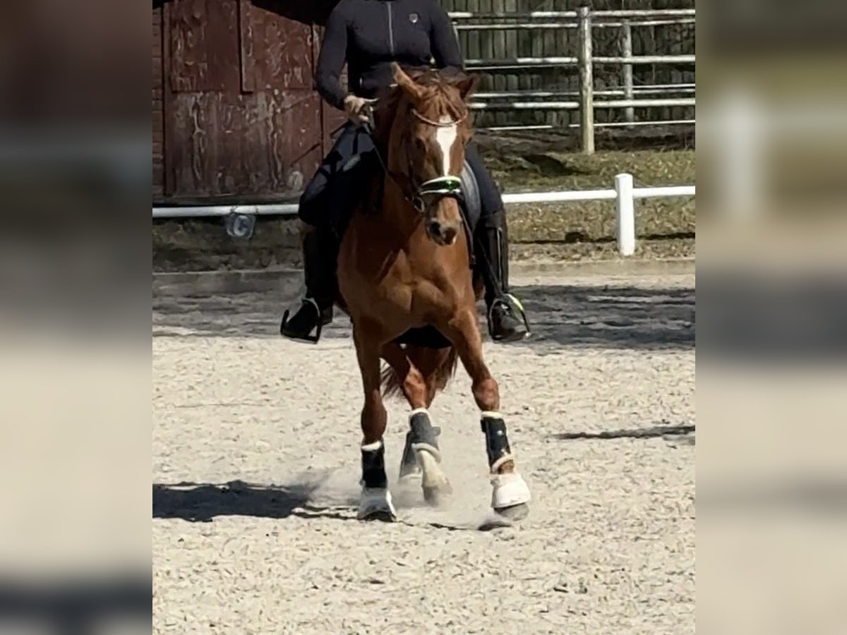 Jumente volontaire au bon galop de base, avec beaucoup d'expérience et une grande assurance en cours. Poney parfait pour débuter directement en compétition. Elle est également très douce et câline avec les plus jeunes enfants, mais reste une véritable sportive qui aime travailler. Un contrôle vétérinaire récent (10/24) est disponible. Le poney n'a jamais été boiteux ni malade chez ses propriétaires actuels. Vidéos sur demande – gamme de prix 20 000 à 30 000 €