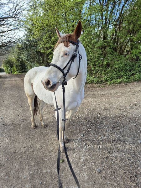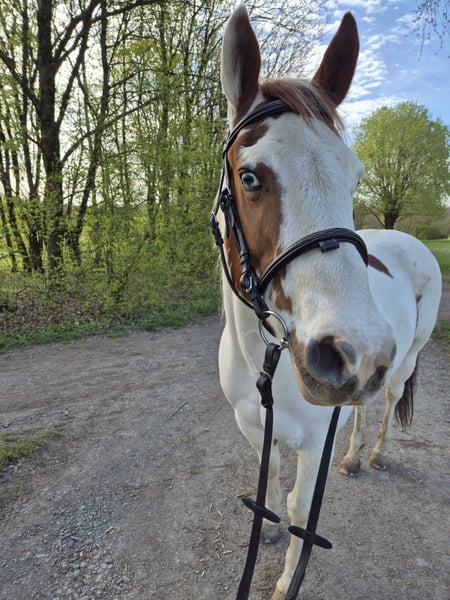 Zum Verkauf steht meine, am 20.05.13 geborene Paint Mix Stute Brada. Stm. 1,48 m. Western und Englisch ausgebildet. Wird zur Zeit aber nur leicht gearbeitet und überwiegend vom Boden aus. Sie geht gern ins Gelände. Sie ist kein Anfänger- oder Kinderpony und gehört in liebevolle aber erfahrene Hände. Das ist auch der Grund weshalb ich sie verkaufe. Ich brauche ein Pferd, dass auch für meine noch unerfahrene Tochter geeignet ist. Brada ist ein 1 Mann/Frau Pferd, dass sich klare Führung wünscht. Zur Zeit steht sie in einer kleinen gemischten Herde und kommt nur über Nacht in die Box.