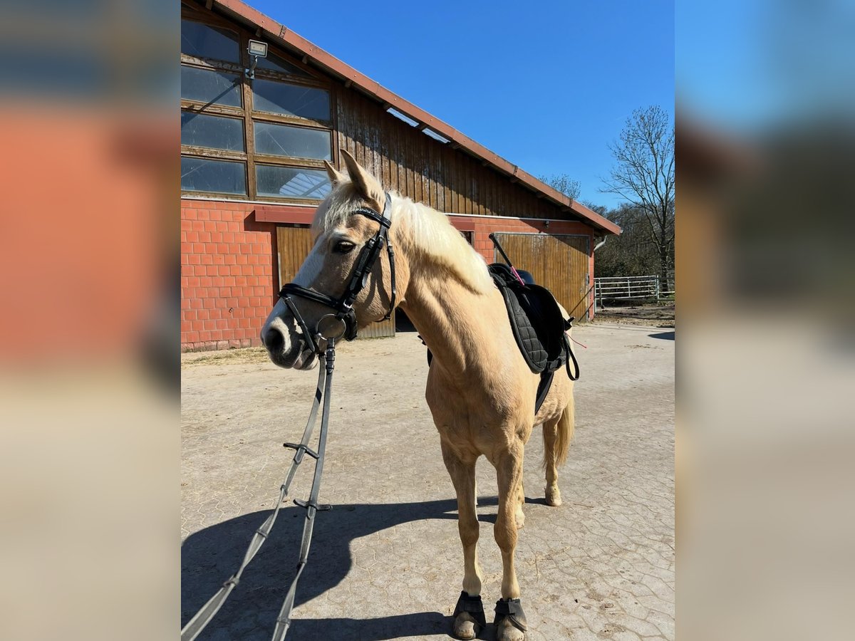 Palominostute Vilma sucht ein liebevolles neues Zuhause Schweren Herzens verkaufen wir unsere 15-jährige Palominostute Vilma. Niederländisches Reitpony. Sie ist ca. 1,41 m groß und eine motivierte, vielseitige Partnerin, die für jeden Spaß zu haben ist. Vilma zeigt sowohl im Springen als auch in der Dressur stets Arbeitsfreude und Motivation. • Springen: E–A-Niveau • Dressur: A** Vor 2020 ist sie zudem regelmäßig Turniere gegangen. Typisch Stute kann Vilma auch mal ihren eigenen Kopf haben. Deshalb wünschen wir uns für sie pferdeerfahrene Menschen, die sich fair, aber konsequent durchsetzen können. Dann ist sie eine tolle und zuverlässige Partnerin. Sehr wichtig ist uns, dass Vilma in ihrem neuen Zuhause regelmäßigen Weidegang bekommt und gut umsorgt wird. Platz vor Preis! Bei ernsthaftem Interesse freuen wir uns über eine Nachricht. Um Reittourismus vorzubeugen, berechnen wir für Besichtigung und Probereiten eine Aufwandsentschädigung von 25 €.