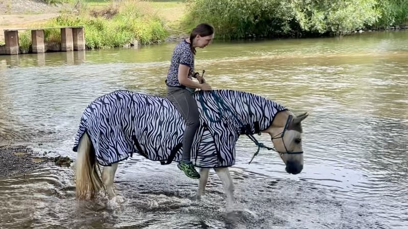 Meggi ist eine fröhliche, vielseitige fast 15-jährige Reitpony-Tinker Stute. Sie ist sehr gut am Kappzaum vom Boden und an der Longe gearbeitet und mag auch Freiarbeit. Meggi ist ein tolles Gelände-und Wanderreitpony und sehr herdenorientiert. Aktuell kuriert Meggi eine Lahmheit aus. Da dies aufgrund der hier möglichen Haltungsbedingungen sehr herausfordernd ist, erwäge ich einen Verkauf, wenn die Behandlung fortgesetzt wird und die Rahmenbedingungen besser sind. Noch benötigt sie Boxenruhe und wird täglich geführt. Meggi ist ein leichtfuttriges Pony, daher ist eine grasfreie Haltung o.ä. ideal. Bei Interesse und mit Fragen melden sie sich gerne. Platz vor Preis.