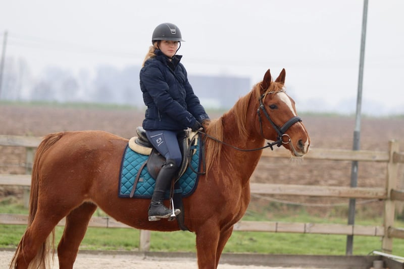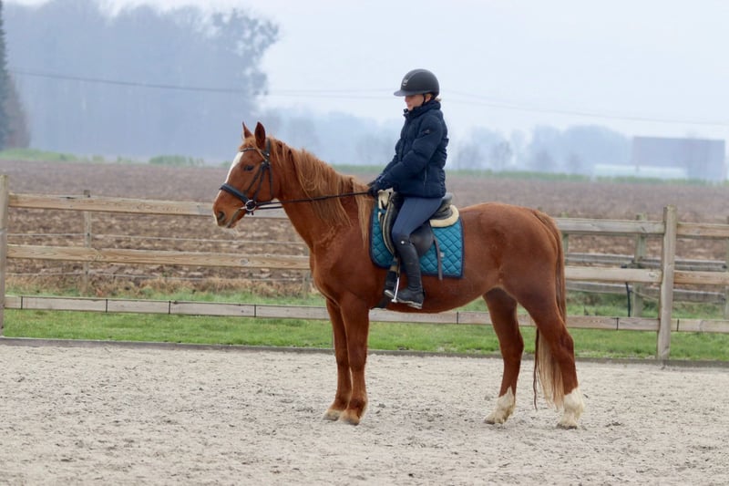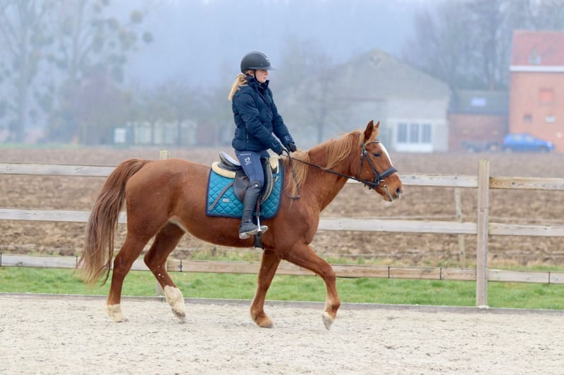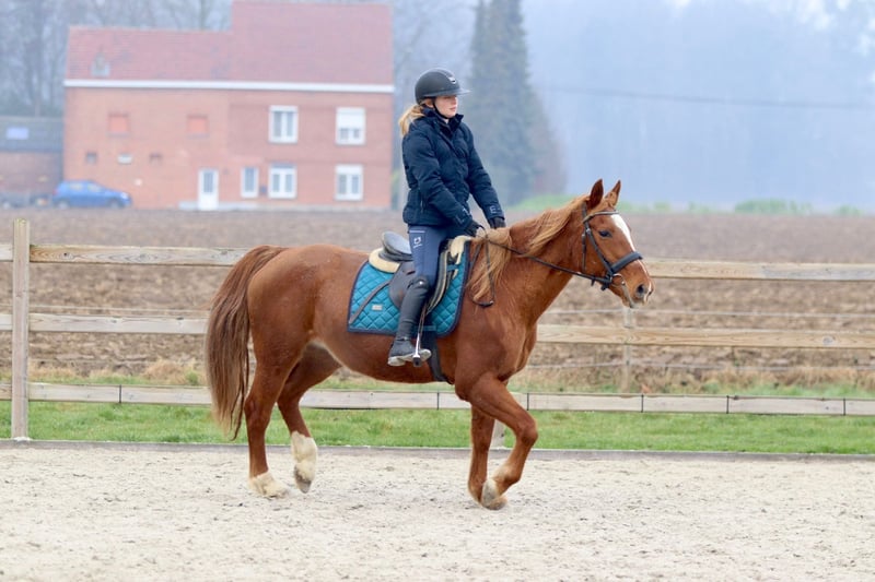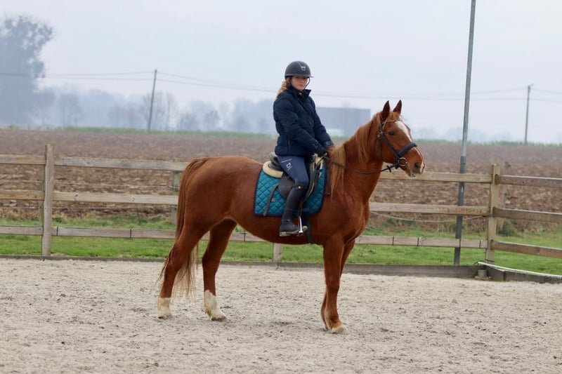 Questa amazzone di 17 anni, alta 1,53 m, è una cavalla estremamente piacevole da cavalcare. Nel suo comportamento non è eccessivamente affettuosa e può essere un po' indipendente, ma sotto la sella si comporta in modo eccellente. Ginger è facilissima da montare, obbediente e affidabile, e collabora sempre con il cavaliere. Per questo motivo è molto adatta come cavalla da scuola, soprattutto per chi desidera svilupparsi ulteriormente nel salto ostacoli. Salta con onestà, è facile da controllare e dà molta sicurezza al suo cavaliere. Per ulteriori informazioni? 0032475682243 Per video, chiedi sul nostro sito web
