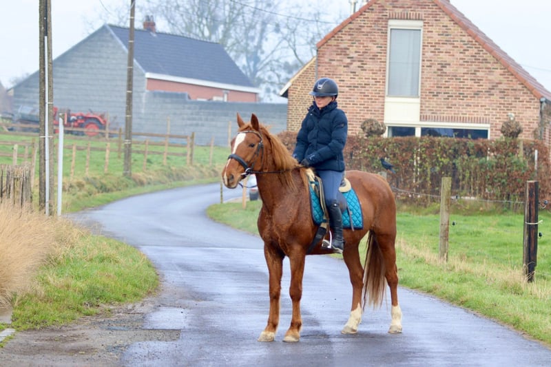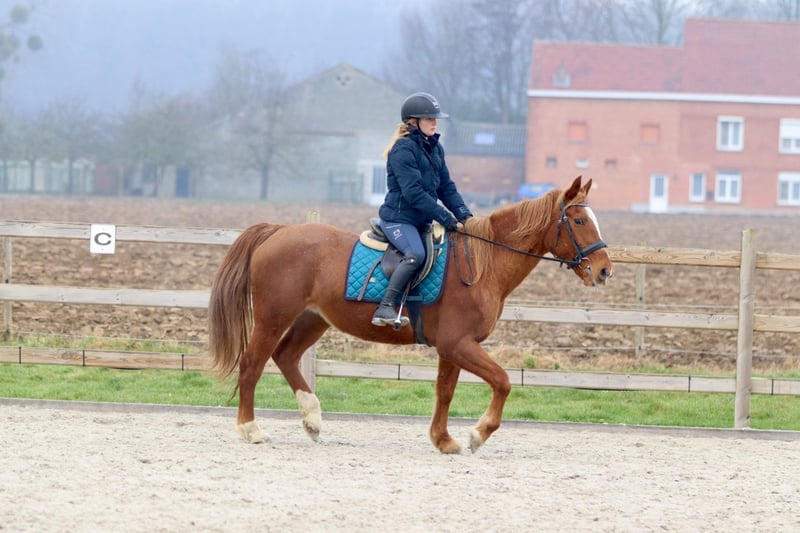 Cette jument de 17 ans et mesurant 1,53 m est un cheval extrêmement agréable à monter. En dehors du box, elle n’est pas excessivement câline et peut parfois être un peu indépendante, mais sous la selle, elle se montre tout simplement exceptionnelle. Ginger est très facile à monter, obéissante et fiable, et elle pense toujours avec son cavalier. Grâce à cela, elle convient parfaitement comme cheval d’apprentissage, en particulier pour quelqu’un qui souhaite progresser en saut d’obstacles. Elle saute de façon honnête, est facile à contrôler et donne beaucoup de confiance à son cavalier. Plus d’informations ? 0032475682243 Pour voir des vidéos, demandez sur notre site internet