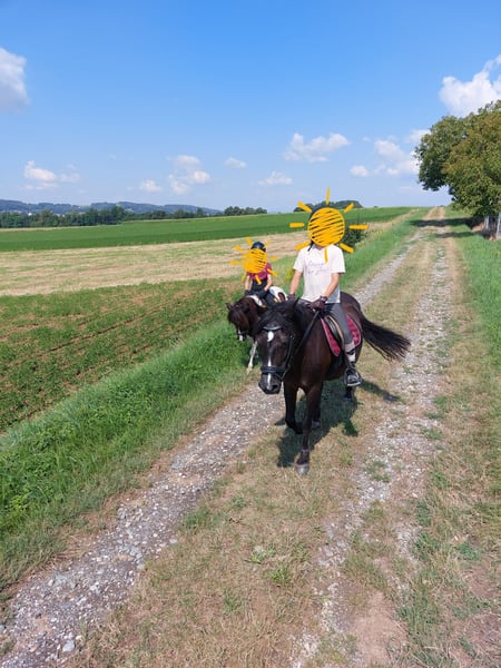 Aufgrund unserer Bestandsverkleinerung sucht Bonnie ein neues Zuhause. Sie ist 17 Jahre alt geht am liebsten ins Gelände, wo sie genügend go hat, aber immer gut auch von Kindern zu händeln ist. Im Viereck zeigt sie sich von ihrer gemütlichen Seite. Sie ist brav beim Hufschmied, verladefromm und kennt es auch auswärts zu sein. Wir können sie uns als Freizeitpferd für gemütliche Ausritte oder für Anfänger vorstellen.