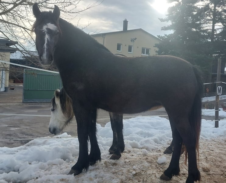 Beautiful 2-year-old grey mare in the best hands to go. Hera lives in a mixed herd in an open stable, where she also grew up. She is a lively, alert, and brave young lady, fully vaccinated and dewormed, and regularly attended to by the farrier. Unfortunately, she has a summer eczema. Therefore, I am only offering her to knowledgeable and experienced owners with proper management and sufficient resources to handle the eczema. Anyone with experience in young horses and the ability to manage her condition will get a wonderful little horse. Currently, she measures 145 cm at the withers and has a sturdy build. Her mother is 151 cm tall. The sire is visible in the last pictures. Price is secondary! No dealers! Her mother is a state premium Connemara mare, and her sire is a purebred Shetland pony.