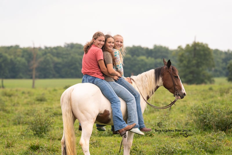 🐴 𝒕𝒉𝒆 𝐅𝐀𝐋𝐋 ℙ𝕆ℕ𝕐 𝑺𝒑𝒆𝒄𝒕𝒂𝒄𝒖𝒍𝒂𝒓🐴 Happening now thru MONDAY | SEPTEMBER 29th - Available EXCLUSIVELY on Ponybid's website! For more details and to register visit: www.Ponybid.com CONSIGNOR CONTACT: Broken S Equine Kieran 908-645-2127 or Beau 573-303-4087 LOCATION: Bogard, MO BREED: Paint REGISTERED: No COLOR: Paint HEIGHT: 13.3 AGE: 4 GENDER: Mare Dolly is a 4 year old paint mare standing 13.3 hands high. She has the moves and talent to shine in the show ring, and the quiet nature for absolutely anyone to enjoy. Talk about an unflappable horse, Dolly will stand still as a statue with bull whips being cracked, fireworks, and gunshots. She was born with a quiet mind, always being a slow and steady type. She’s ridden out with cows, gone cross country, enjoyed hunter paces, and of course has trail ridden on all over the countryside. She’s big enough in the body for adults, and gentle for the smallest riders too! Whether you want a future partner for the show ring, or a gentle and safe horse that anyone can take out on the trails today, Dolly is your girl! In the ring, Dolly has three comfortable and steady gaits. She picks up both leads, has a nice stop, and is easy for anyone. This mare is so gentle, we trust can trust her with anyone. Going off property to school in new, spooky, places was a breeze with her. She doesn’t get worked up a bit, and treats every new place like it’s home. On the trails, Dolly is steady and relaxed. She loves trail riding and hacking out. The kids can safely take her out alone, and she’s happy to go wherever you point her. She is safe in traffic, will cross water, and is the same quiet horse on any terrain. In the barn, Dolly is sweet and kind. She loves attention! She’s polite, yet affectionate, and gets along well with her people. She lives outside in a mixed herd of mates and geldings, and is an easy keeper with no vices or maintenance. Clean recent vet check on file