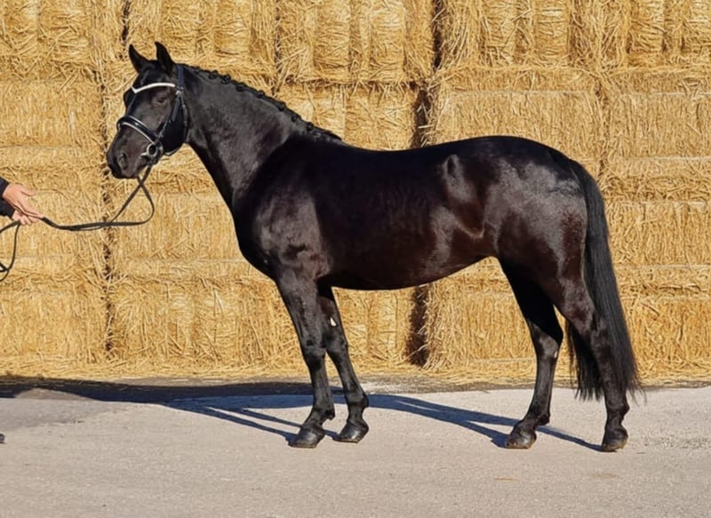 🌺🦄 Lédi 🦄🌺 📅 Age: 5 years ♀️ Gender: Mare 📏 Height: 14.1 hh ✨ Lédi is a stunning, typy sport pony mare with excellent conformation and noble presence. Her harmonious build, refined topline, and elegant appearance make her a real eye-catcher – both in training and at competitions. 💫 Character: Lédi impresses with her balanced, friendly, and cooperative nature. She is attentive, eager to learn, and always shows joy in her work. Sensitive to aids, rideable, and uncomplicated – ideal for young riders or adults seeking a powerful and reliable sport pony. 🏅 Areas of Use: ✔️ Movements with great cadence, impulsion, and expression ✔️ Excellent rideability and balance ✔️ Promising prospects for dressage, jumping, or eventing in pony sport 🌿 Health & Care: Naturally well-built. Lédi is in excellent health, clear-minded, and has been gently brought on. 🔥 Special Features: With her height of 14.1 hh, she perfectly fits the sport pony size and combines the elegance of a full-sized horse with the manageability of a pony. Lédi is an ideal partner for ambitious pony sport, but also a wonderful companion for leisure riding. 🌟 Fully ridden and well-trained. 💖 Perfect for beginner riders. Ideal for sport and leisure 🏇 +49 176 4017 6789
