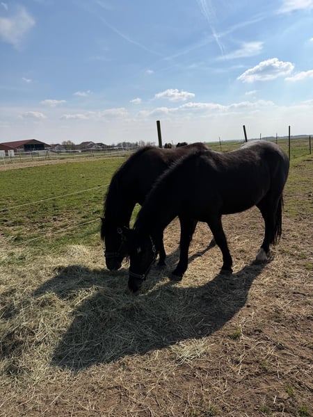 Das Pony ist eingefahren und angeritten. Sie ist hoch trächtig. Geburt in ca. 4 Wo. Sehr brav im Umgang und sehr verschmust. Es gibt noch einen Kutschpartner Wallach, Rappe 5 Jahre. Sind im zweier Gespann eingefahren. Einzeln oder beide zu verkaufen.