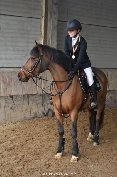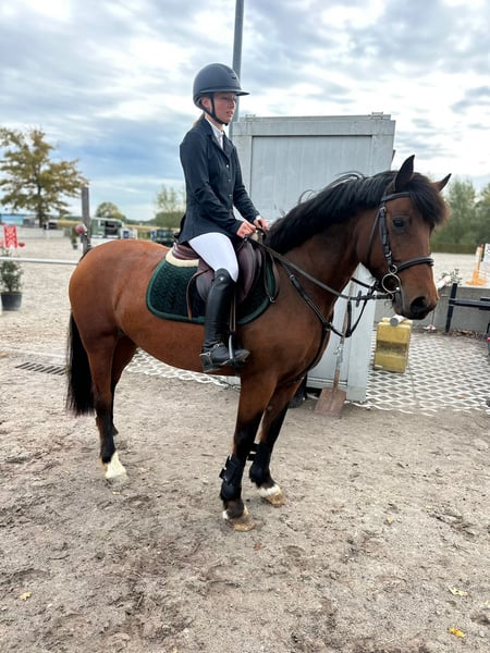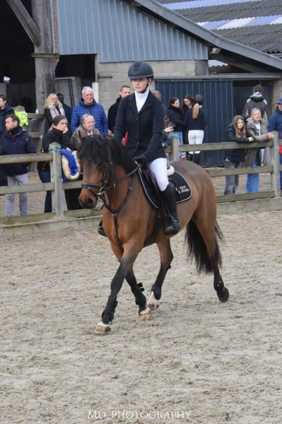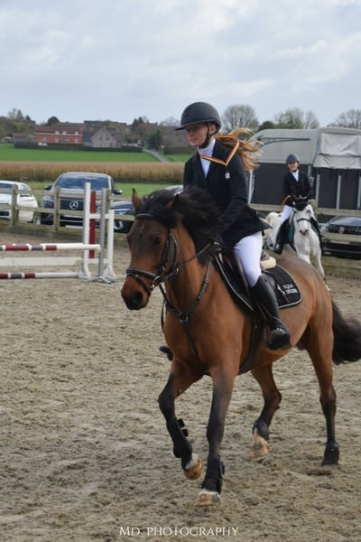 Nice jumping pony – Rush ✨ Rush is an 8-year-old mare standing at 1.44m, solidly built and a real eye-catcher in the ring. She is beautifully forward-going, but always easy to bring back. 🏅 Jumping experience: Rush has already competed in several courses at competition level (85–90 cm) and does this with great enjoyment and power. She has plenty of course experience and is ready to further develop with her new rider. 👩🎓 Rider profile: Not suitable for complete beginners, but perfect for a rider who has a good command of the three basic gaits and wants to enter the sport. 🌳 Well-behaved in handling & on trail rides: Rush is a super well-behaved pony, both alone and in a group on trail rides. She is also very social in handling and gets along well with other horses and ponies. 📞 More info? Call or text +32 475 68 22 43 🎥 For videos, you can visit our website – feel free to send a message!