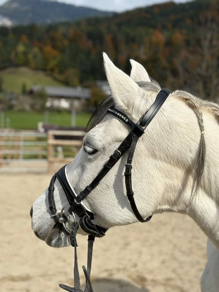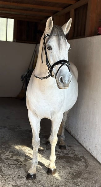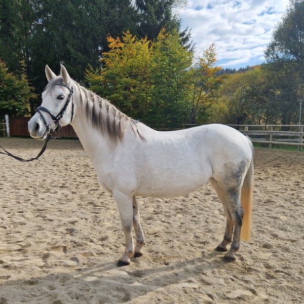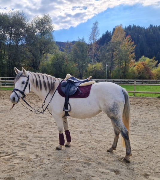 Unsere wunderschöne 8jährige Ponystute Gabi ist ein echtes Herzenspony – zuverlässig, gelassen und mit einem Traumcharakter ausgestattet. Sie ist das perfekte Pony für Kinder, Anfänger oder schwächere Reiter, aber auch aufgrund ihres ruhigen Wesens und ihrer Größe (145 cm Stockmaß) hervorragend für den Therapieeinsatz geeignet. Mit ihrem kompakten, stabilen Körperbau deckt sie auch größere Reiter problemlos ab, sodass sie für Kinder, Jugendliche und auch Erwachsene, die lieber ein Pony reiten möchten, ideal ist. Gabi läuft brav in allen drei Grundgangarten auf dem Platz und zeigt sich dabei stets kooperativ und angenehm zu reiten. Sie ist eher vom gemütlichen Typ, stets freundlich und unerschrocken. Auch an der Longe ist sie sehr brav – selbst mit kleinen Kindern. Im Gelände ist Gabi ein absoluter Schatz: nervenstark, unerschrocken und zuverlässig, egal ob in der Gruppe oder alleine. Mit ihrem Prinzessinnen-Look und ihrem liebevollen Wesen ist sie ein echtes Traumpony für die ganze Familie. 🩷 Gabi ist gesund, hat keine Unarten und ist im Umgang ein absoluter Traum – vom Putzen bis zum Reiten einfach unkompliziert. Ein komplettes Zubehörset kann auf Wunsch gegen Aufpreis mit erworben werden. Ein Besichtigungstermin kann gerne jederzeit nach Absprache stattfinden und ein Transport kann gerne organisiert werden!