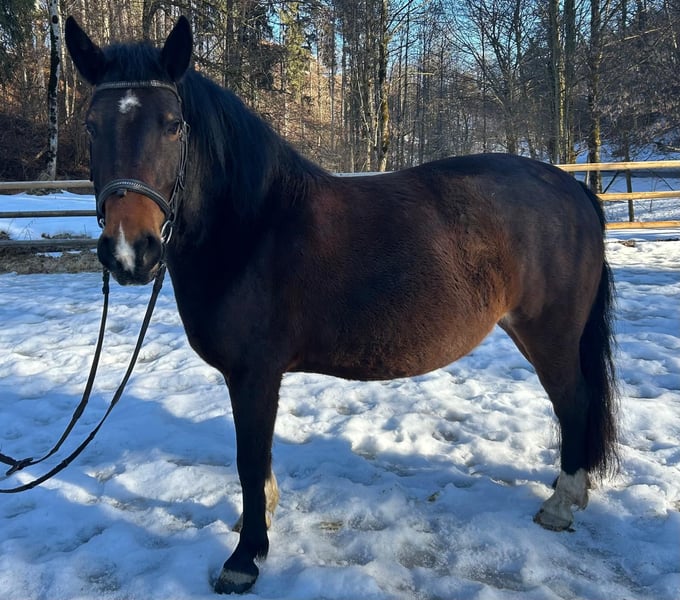 Stute Lora Stockmaß: 1,43 m Rasse: Bulgarisches Reitpony Geburtstag: 25.11.2017 Alter: 8 Jahre Lora ist eine kräftige Stute mit ca 1,43m Stockmaß. Sie hat Erfahrung im Reitunterricht unserer Ponyreitschule und geht regelmäßig zu zweit oder in der Gruppe ins Gelände. Sie lebt in einer Herde und ist barhuf. Lora ist brav im Umgang und war auch schon auf festlichen Ritten mit Musik dabei, was sie souverän gemeistert hat.