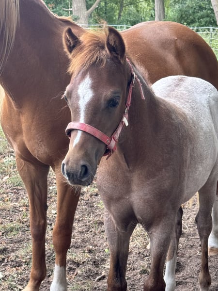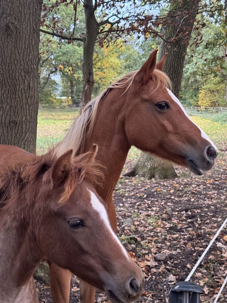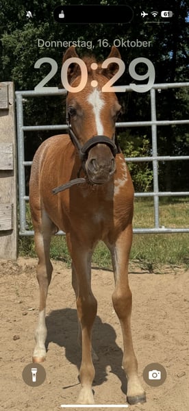 Sprzedajemy naszego małego „Dobby’ego”, jeśli wszystko będzie w 100% odpowiadało nowemu właścicielowi. Urodził się w maju tego roku i będzie mógł trafić do nowego domu w grudniu. Ze względu na wzrost rodziców przypuszczamy, że osiągnie nieco ponad 140 cm wzrostu w kłębie. Dobby od pierwszego dnia wykazuje dużą pewność siebie i podchodzi do wszystkich nowych sytuacji oraz innych koni z ciekawością zamiast niepewności. Obecnie jego towarzyszem zabaw jest nasz 4-letni arab. W przyszłym domu chcielibyśmy, aby miał kogoś do wspólnej zabawy. Podczas rejestracji pokazał się z najlepszej strony i otrzymał premię. Zna oczywiście podstawy nauki młodych koni i codziennie rano jest wyprowadzany na pastwisko, a wieczorem z powrotem do stajni. Jest grzeczny, jednak potrzebuje konsekwentnego wychowania, ponieważ lubi czasem testować granice. Ma świetne predyspozycje do przyszłej kariery sportowej: jego ojciec, Django 468, startował do tej pory w konkursach skoków do poziomu M** i pochodzi od Del Piero 25, który przy wzroście 143 cm zdobywał M**. Matką Dobbego jest nasza piękna, czysto krwiowa klaczka haflingera Honey Bee. Przyjechała do nas jako źrebię, została przez nas wytrenowana i głównie jeźdzona rekreacyjnie. W ostatnich latach jeździły na niej dzieci, zawsze była niezawodna. Ze względu na nasz wzrost nie promowaliśmy jej w skokach, ale w wolnym skoku pokazała duży talent i bez problemu skakała do 120 cm. Nie ma więc przeszkód, aby Dobby miał obiecującą karierę skokową. Chcielibyśmy, aby znalazł kochających właścicieli, którzy będą wspierać jego talenty, gdy będzie już wystarczająco dojrzały. Jeśli stanie się kucykiem sportowym i w końcu będzie za mały, chcielibyśmy mieć możliwość jego odkupu, ponieważ nie chcemy, aby często zmieniał dom.