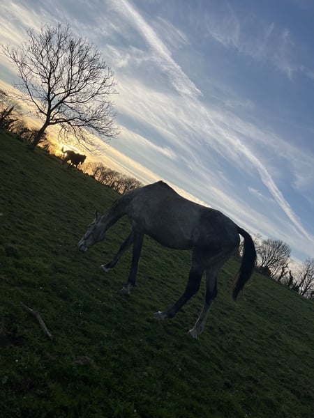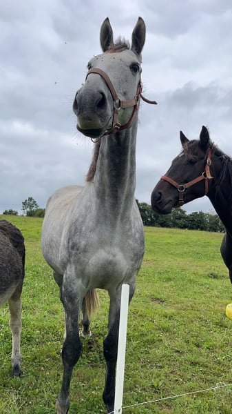 Superbe pur-sang réformé des courses, âgé de 10 ans, toisant environ 1,67 m. Ce cheval vit actuellement en troupeau et s’y comporte de manière exemplaire : très sociable, facile à vivre au quotidien. D’un tempérament calme et respectueux, il est agréable à manipuler aussi bien à pied que monté. Il possède de bonnes bases, mais nécessite un cavalier ayant au minimum un niveau galop 5 pour en tirer pleinement le potentiel. Polyvalent, il conviendra aussi bien pour : - le saut d’obstacles - l’endurance - le loisir (balades, travail sur le plat) Cheval gentil, volontaire et proche de l’homme, idéal pour cavalier souhaitant évoluer avec un partenaire fiable et attachant. Attention, Jeali a besoin de beaucoup d’attention. Plus d’informations, sur demande.