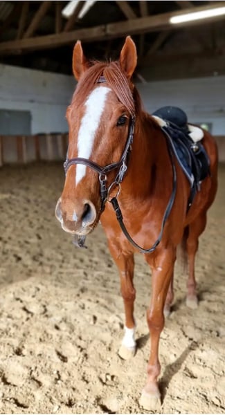 Wir verkaufen unseren 6-jährigen Vollblüter Wallach, abstammend von George Vancouver x Bidart. Er ist bis vierjährig im Besitz von The Dutch Master Stables Rennen gelaufen und wurde anschließend von Libertys Home übernommen, wo wir ihn für unseren Schulbetrieb erworben haben. Im letzten Jahr habe ich ihn von meinen Eltern übernommen, um ihn Dressur- und Springmäßig weiter zu fördern. Da mir momentan jedoch die Zeit fehlt, steht er nun zum Verkauf. Er ist barhuf, wird regelmäßig dem Hufschmied vorgestellt, ist geimpft und entwurmt. Beim Verladen zeigt er sich brav und unkompliziert. Er kennt das Ausreiten sowohl allein als auch in der Gruppe und zeigt sich dabei aufmerksam und unkompliziert. Springen, sowie das Arbeiten auf dem Vielseitigkeitsplatz sind ihm ebenfalls vertraut. Ein absoluter Allrounder – sowohl für den Freizeit- als auch für den Sportbereich interessant. Bei Interesse gerne melden unter +49 179 3722430