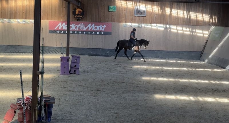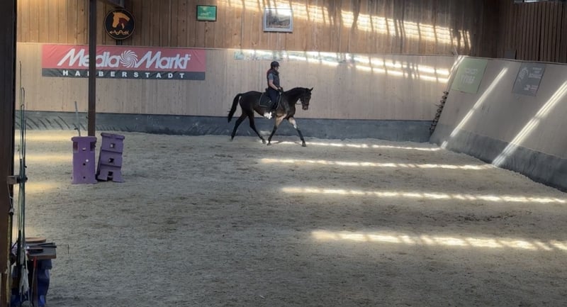 🌟 Lionheart: Gelding with a Heart of Gold for the Upscale Leisure Rider 🌟 For sale is this beautiful, people-oriented thoroughbred gelding with a true heart of gold, who always aims to please his rider! Lionheart is a 7-year-old bay gelding standing at 16.1 hh. He impresses with his charming and honest nature. Character & Suitability • Character: Lionheart is eager to work but always manageable. He is a real gem, willing to learn and extremely people-oriented. He loves being pampered and enjoys every bit of attention. • Training Level: In dressage, he is trained to the level of an advanced leisure rider and is ready for further development. • Rideability: He is well-behaved to ride, even for slightly less experienced riders. However, we are looking for supportive hands that want to further develop his potential in dressage. • Handling: He is easy to load and shoe and is familiar with both dogs and other horses. Care & Health • Care: He is currently kept in a box with daily turnout. He is low-ranking and uncomplicated in his interactions with other horses. • Health: Lionheart is healthy. A fresh veterinary check (TÜV) will be conducted before the sale. This wonderful gelding is ideal for ambitious leisure riders looking for a reliable partner for daily work and fine dressage. Price: €5,800 (fixed price) Location: 38828 Wegeleben Only to be sold to the best hands, as his future well-being is very important to us. If you are seriously interested, we look forward to your message! We charge €30 for trial rides, which will be deducted from the purchase price.