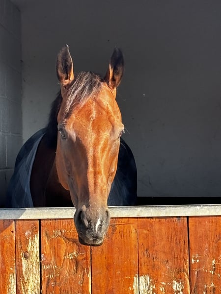 Zum Verkauf steht ein großrahmiger Vollblutwallach. Stk ca. 1,68m Er ist geritten, kennt Koppel, Hunde, Traktoren und alles was zum täglichen Leben dazugehört. Er hat ein starkes Nervenkostüm und ihn bringt so schnell nichts aus der Ruhe. Dennoch benötigt er einen sicheren Reiter und ist nichts für Anfänger. Er steht seit 2019 in meinem Besitz. Leider hatte er einen Koppelunfall 2024 bis dahin war er nie krank. Sprunggelenk hinten links wurde in der Klinik behandelt. Es beeinträchtigt ihn nicht beim reiten und er ist Lahmfrei. Hierzu gibt es auch ein tierärztliches Attest. Das Gelenk ist nicht beschädigt aber es wird immer verdickt bleiben. Auf Anfrage erzähle ich das gerne genau. Es wird ohne Druck verkauft und nur in ein 5* Sterne Zuhause mit täglichem Koppelgang. Bei dem perfekten Zuhause ist der Preis zweitrangig.