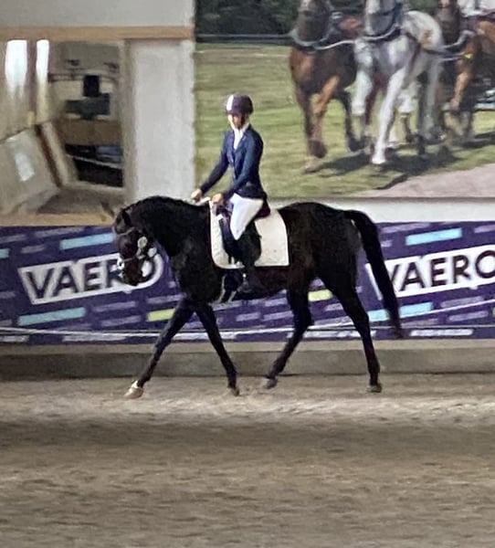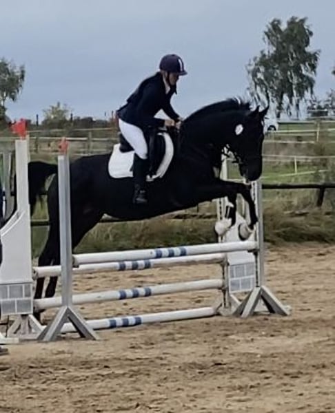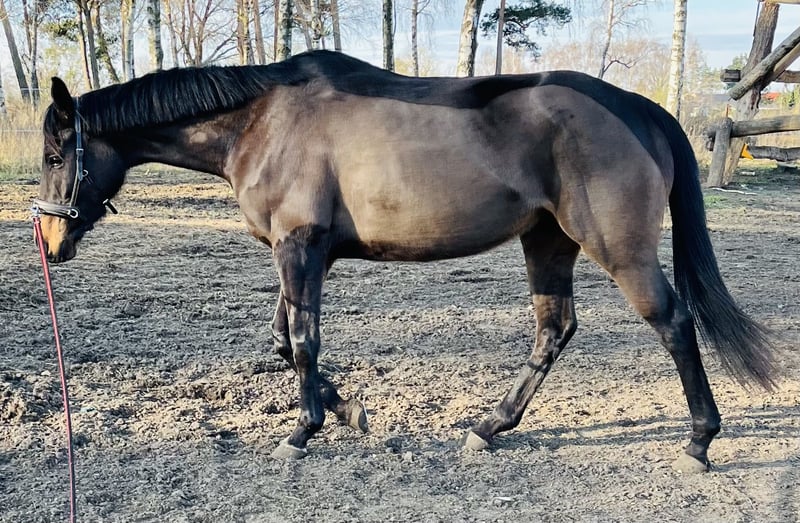 Ich gebe meine Stute Hope ab. Hope wird im April 6 und ist 160 groß. Sie wird Dressurmäßig ausgebildet und läuft sicher alle Gangarten , sowie Schenkelweichen in allen Gangarten,Schulterherrein,Seitengänge und Außengalopp angefangen. Im Gelände ist sie Sicher und Selbstbewusst, läuft artig auch im Straßenverkehr, Trecker , Lkw Autos sind kein Problem für sie. Ob allein oder in der Gruppe. Hope ist ein sehr fleissiges Pferd mit Go, aber kein Durchgänger. Longe, Doppellonge, oder Kinder an der Longe im Unttericht klappt super, auch im Dressur Unterricht können Kinder oder Anfänger sie frei reiten. Trotzdem ist sie kein reines Anfänger Pferd . Hope kennt es regelmäßig zum Training , Lehrgänge, Ausritte etc. Weg zu fahren. Sie steigt allein in den Hänger und man kann sie problemlos allein verladen. Sie kennt Wasser und geht auch problemlos in allen Gangarten durch , sowie rein oder raus Springen aus dem Wasser. Sie springt sehr gerne wurde aber die letzten Monate nicht weiter gefördert, sie wird Heiß beim Springen und braucht dort eine sichere Person ohne Angst. Tunierluft hat sie schon geschnuppert im springen und der Dressur . Hope ist Tunierpferde eingetragen und dementsprechend auch Geimpft , regelmäßig ihr Zähne gemacht und Osteophatisch behandelt, ebenso alle 8 Wochen dem Schmied vorgestellt und ist vierfach beschlagen. Sie kennt Offenstall und Boxenhaltung . Fühlt sich im Offenstall aber deutlich wohler