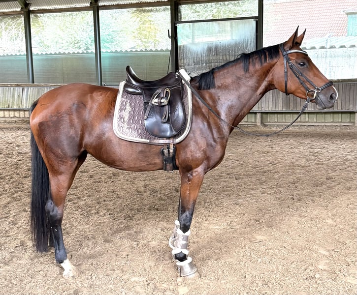Tolle 6 jährige stute sucht ihren Menschen. Sweet Soroya ist eine 6 jährige stute, 165cm und stammt ab von Sarotti Mokka Sahne x Graf Remus. Sie besticht durch ihre Optik und ihrer drei guten Grundgangarten. Sie ist Dressurpferde A platziert mit 8ter Noten und beherrscht die L Lektion welche noch etwas gefestigt werden müssen. Sweet Soroya liebevoll Roja genannt ist für alle Sparten geeignet. Sie hat Spaß an der Dressur, dem Springen und geht auch gerne mal eine entspannte Runde in den Wald ob alleine oder in der Gruppe. Also ein kompletter Allrounder, ich könnte sie mir gut in der Vielseitigkeit vorstellen. Roja ist ein Arbeitstier und möchte gerne was tun aber auch wenn sie mal ein paar Tage hintereinander Pause hat ist sie brav. Dennoch ist sie kein reines Anfänger Pferd, da sie korrekt geritten werden möchte und einen einfühlsamen Reiter braucht der ihr aber dennoch klare Anweisungen gibt. Roja ist eine Charakter Stute und sucht sich ihre Menschen aus, wenn sie diese gefunden hat tut sie alles für ihre Menschen! Sie kennt boxenhaltung mit täglichem weidegang in der Herde, kennt es aber auch immer Sommer 24h draußen zu stehen. Ich wünsche mir für sie ein Zuhause wo sie ihren Mensch hat für den sie durchs Feuer gehen kann! Täglicher Weidegang oder Paddock ist ein muss! Ein kompletter TÜV aus Ende 2023 ohne Befunde liegt vor.