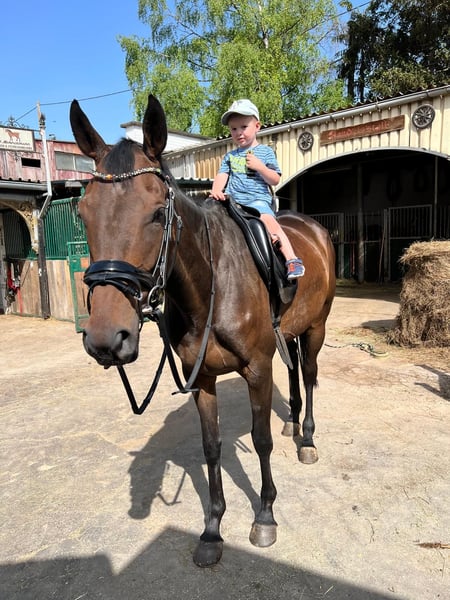Vielseitige Vollblutstute sucht neues Zuhause Auri ist eine im Jahr 2018 geborene Vollblutstute mit einem Stockmaß von ca. 163 cm, die sich als echter Allrounder präsentiert. Sie überzeugt durch ihre Rittigkeit, ihren Fleiß und ihre Vielseitigkeit in unterschiedlichen Bereichen. Sie geht unkompliziert ins Gelände, sowohl alleine als auch in der Gruppe. Im Springen ist Auri bis E/A*-Parcours ausgebildet und zeigt dabei Freude und Übersicht. In der Dressur ist sie sicher auf A-Niveau, beherrscht Seitengänge sowie fliegende Wechsel und lässt sich fein und korrekt reiten. Bisher ist sie auf Grund geringer Turnierambitionen nur auf WBO Turnieren/ Reitertagen vorgestellt worden und konnte sich hier im Springen bis 90 cm platzieren. Auri eignet sich ideal für Reiterinnen oder Reiter, die ein vielseitiges, sportliches Pferd für Freizeit und Turnier suchen. Sie ist im Umgang und beim Reiten brav, jedoch nicht für Anfänger geeignet. Sie steht in einer kleinen gemischten Herde und soll in ihrem neuen Zuhause auch ausreichend Koppelgang haben. Pferd koppt, hat damit jedoch keine weiteren Einschränkungen.