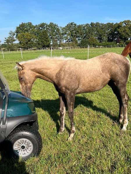Zum Verkauf steht ein außergewöhnliches Palomino-Stutfohlen mit seltener reiner Vollblutabstammung eingetragen beim Oldenburger Sringpferdezuchtverband. Ein seltener Farbschatz mit sportlicher Perspektive . Sie vereint die Eleganz und Härte des Vollblutes mit einem modernen, sportlichen Exterieur-dazu eine goldene Farbgebung, die sie zu einem echten Blickfang macht. Menschenbezogen,kennt das Fohlen-ABC: Halfter, Schmied, hängerfahren. Ruht in sich selbst. Nervenstark und unerschrocken. sehr gut bemuskelt . Snowy's Cristobal xx ist efolgreich in Spring- und Geländeprüfungen eingesetzt und besticht durch seinen guten Charakter. Lou's Lillyfee ist leistungsgeprüft beim OS.( Fohlenprämie) Sie hat schon einen sehr typvollen und nervenstarken 3-jährigen Bukskinsohn von Quaside. Perspektive: Ideal für Zucht, Vielseitigkeit oder Springsport-perfekt für Kenner, die das Außergewöhnliche lieben. Auch für anpsruchsvolle Hobbyreiter geeignet. Kann Mitte Dezember abgesetzt werden.(geb. 28.6.) Nur in kompetente Hände abzugeben