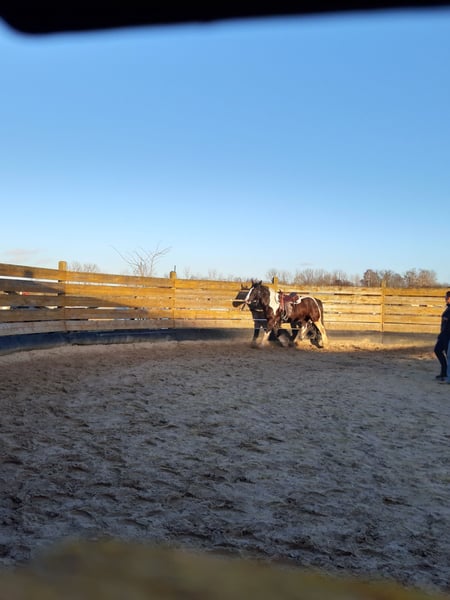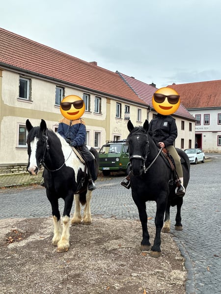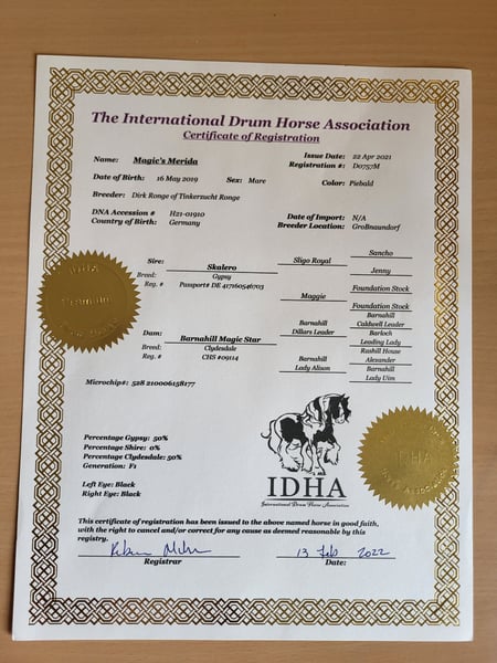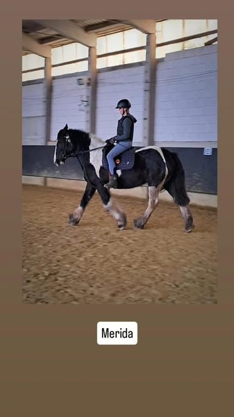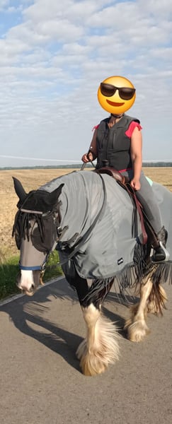 Magic´s Merida KEINE RATENZAHLUNG/KEIN TAUSCH/KEINE ZUR VERFÜGUNGSTELLUNG Bitte überlegen Sie vorher, ob die Zeit und die finanziellen Mittel auch zur Verfügung stehen, dies erspart uns Allen viel Aufwand. Zum Verkauf steht unsere wundervoll gezeichnete Premium-Drumhorse-Stute Magic´s Merida. Merida ist ins Stutbuch eingetragen und wurde mit dem Premium-Zertifikat der International Drumhorse Association ausgezeichnet. Merida überzeugt nicht nur durch ihre hervorragende Abstammung, sondern auch durch ihre Erscheinung. Zudem zeigt sie sich bewegungsstark mit schönen Gängen und gutem Schwung. Merida läuft Barhuf, ist ekzemfrei, ist regelmäßig entwurmt und geimpft. Merida ist sehr menschenbezogen, freundlich und lernwillig im Umgang. Merida ist verladefromm, schmiedefromm, zaunsicher, sie lässt sich geduldig anbinden, putzen, waschen und satteln. Merida wurde auf dem Platz in der Halle und im Gelände gearbeitet. Im Gelände braucht Merida klare Führung. Rassebedingt gilt sie als Gewichtsträger. Merida kam als Absetzer direkt vom Züchter zu uns. Sie wurde jungpferdegerecht aufgezogen. Derzeit steht sie im Offenstall in einer kleinen Herde. In den Sommermonaten steht Merida bei uns 24/7 auf den Weiden. Boxenhaltung kennt sie von den Ausbildungsställen. Merida kennt Straßenverkehr, landwirtschaftliche Maschinen und den Umgang mit anderen Tieren. Merida bringt keine Turniererfahrung mit. Zurzeit wurde Merida nicht gearbeitet und müsste entsprechend muskulär aufgebaut und angeschoben werden. Das angepasste Zubehör wird gern mit abgeben. Der Markenwesternsattel mit Bucking-Rolls, Filzpad und Lammfell-Sitzbezug wurde beim Fachmann Janin Radau Palo-Ranch gekauft. Im Weiteren sind Trense, Zaum, Halfter, Longe, Bodenarbeitsseil, Führstrick, verschiedene Decken, Putzbox und Verbrauchsmaterialien zur Pflege beim Zubehör dabei. Fotos vom Equidenpass werden auf Anfrage nachgereicht. Einer AKU spricht nichts entgegen. Wir freuen uns auf liebe, verantwortungsbewusste und erfahrene Menschen mit Herz und Pferdeverstand, denn die Entscheidung zum Verkauf fällt uns allen nicht leicht. Rasse: Drumhorse Geschlecht: Stute Alter: 7 Stockmaß: 1,75 m Farbe: Schecke Typ: Kaltblut Zuchtverband: national ZSSE und international IDHA Abstammung: Skalero x Barnahill Magic Star Ausbildungsstand: Bodenarbeitsausbildung nach Horsemanship durch Janine Deinert Westerntraining, Beritt durch Linda Rüchert EWU Thüringen, weitere Ausbildung durch angehende Trainerin C (nicht näher benannt) Weiteres: Teilnahme am mehrtägigen Dualaktivierungskurs nach Geithner bei Trainerin Karla Hoffmann Preis: 10.000 VB Bitte beachten Sie, dass es sich hier um subjektive Eindrücke handelt. Die genannten Eigenschaften beruhen auf meiner persönlichen Einschätzung und stellen keine zugesicherten Merkmale dar. In einer neuen Umgebung können Verhaltensweisen beeinflusst werden.
