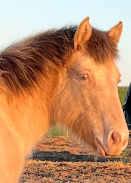 Piękna klacz o złotym umaszczeniu od 21.07.24. Dorasta w stadzie klaczy. Jest zorientowana na ludzi i pełna szacunku w codziennej obsłudze. Jej szybkie i zrównoważone ruchy sprawiają, że jest idealna do wszechstronnego użytku. Zna samochody, traktory, dzieci, rowerzystów, krowy i wiele więcej. Jeśli szukasz solidnego, kompaktowego konia, to ona jest właśnie dla Ciebie. Jej matką jest hiszpańska klacz mustang x Sorraia. Jej ojcem jest kompaktowy, przyjazny ogier rasy Quarterhorse Warto obejrzeć. Wszystko inne na telefon. Jeśli szukasz czegoś wyjątkowego, to ona jest właśnie dla Ciebie